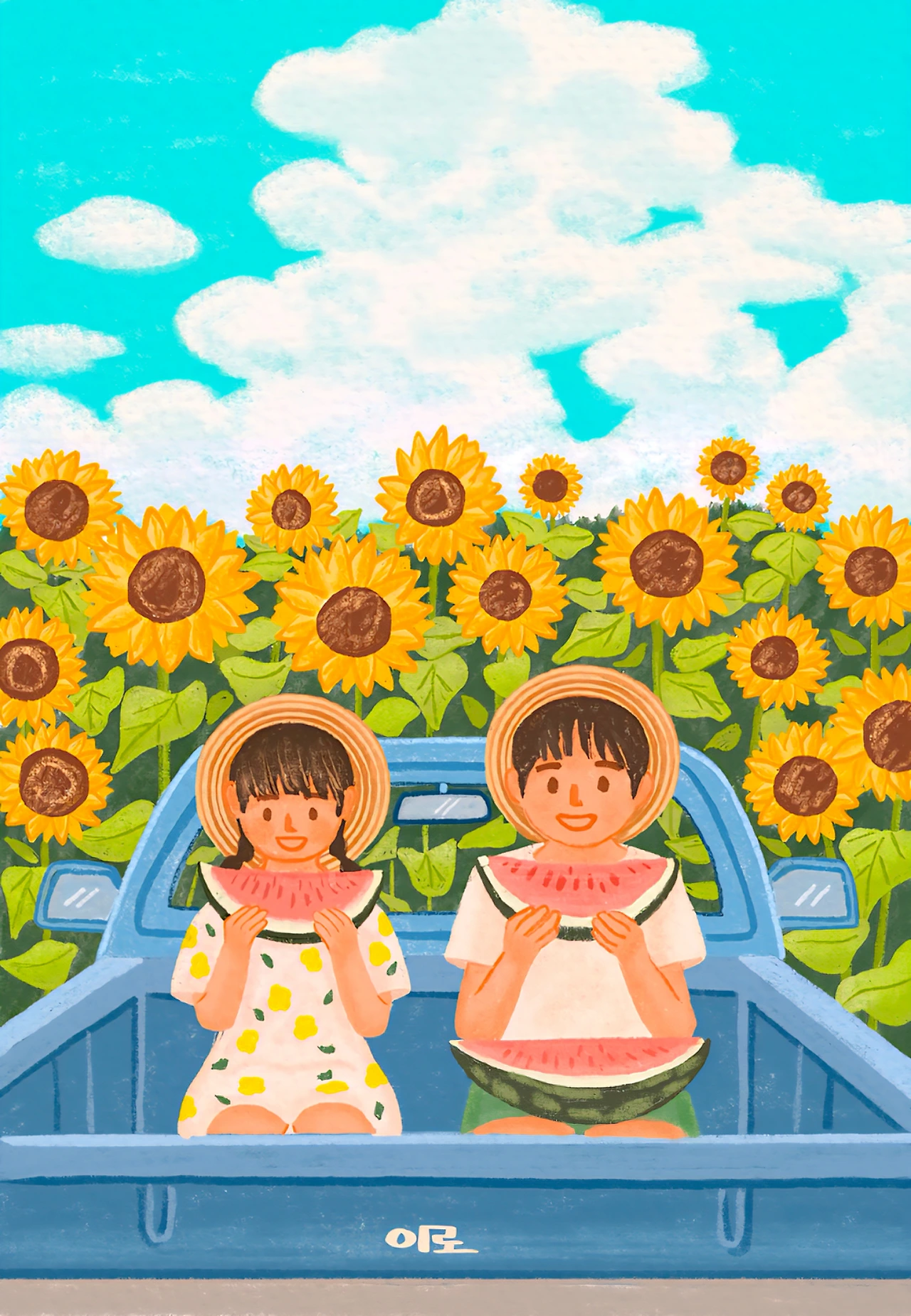 #수박 #수박일러스트 #여름 #여름풍경 #수박 #watermelon #아이들 #아이일러스트 #일러스트 #Illustration #이로 #이로일러스트