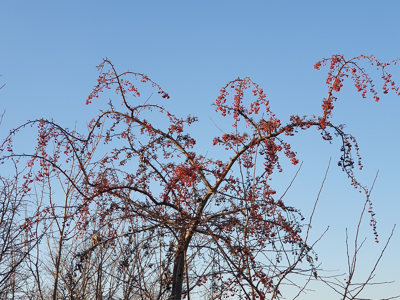 바람을 견디며 앙상한 가지에 대롱대롱 매달린 몇 잎 남지 않은 잎새들을