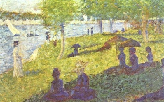 인상파는 빛이 비치는 순간의 느낌을 포착하려는 노력이었는데, 이 인상파의 한계는 너무 세밀한 구도나 형상미를 표현하는데 부족하다는 데서 자신의 독특한 점묘법을 고안한 이가 조르주 피에르 쇠라다. 쇠라의 대표작 <그랑드 자트섬의 일요일 오후>는 점묘법으로 색의 섞임을 방지하고 보색 효과를 과학적으로 표현해 그 당시 이미 대단한 호평을 받았다. 이 작품의 경우도 60여 번의 밑그림 스케치와 현장 답사를 통해 완벽히 빛의 조화를 재현하고자 한 쇠라의 노력이 보인다. 문제는 캔버스에 수십만 개의 점을 채워 넣는 일이 엄청난 수공이 들어가는 일이라 작업 과정이 거의 살인적인 노력이 투입된다는 것이다. 쇠라는 강변의 풀이 자라면 전체적인 구도나 색이 달라지니 풀을 베고서 그림을 그릴 정도로 깨알 같은 정밀함을 추구한 화가였다.