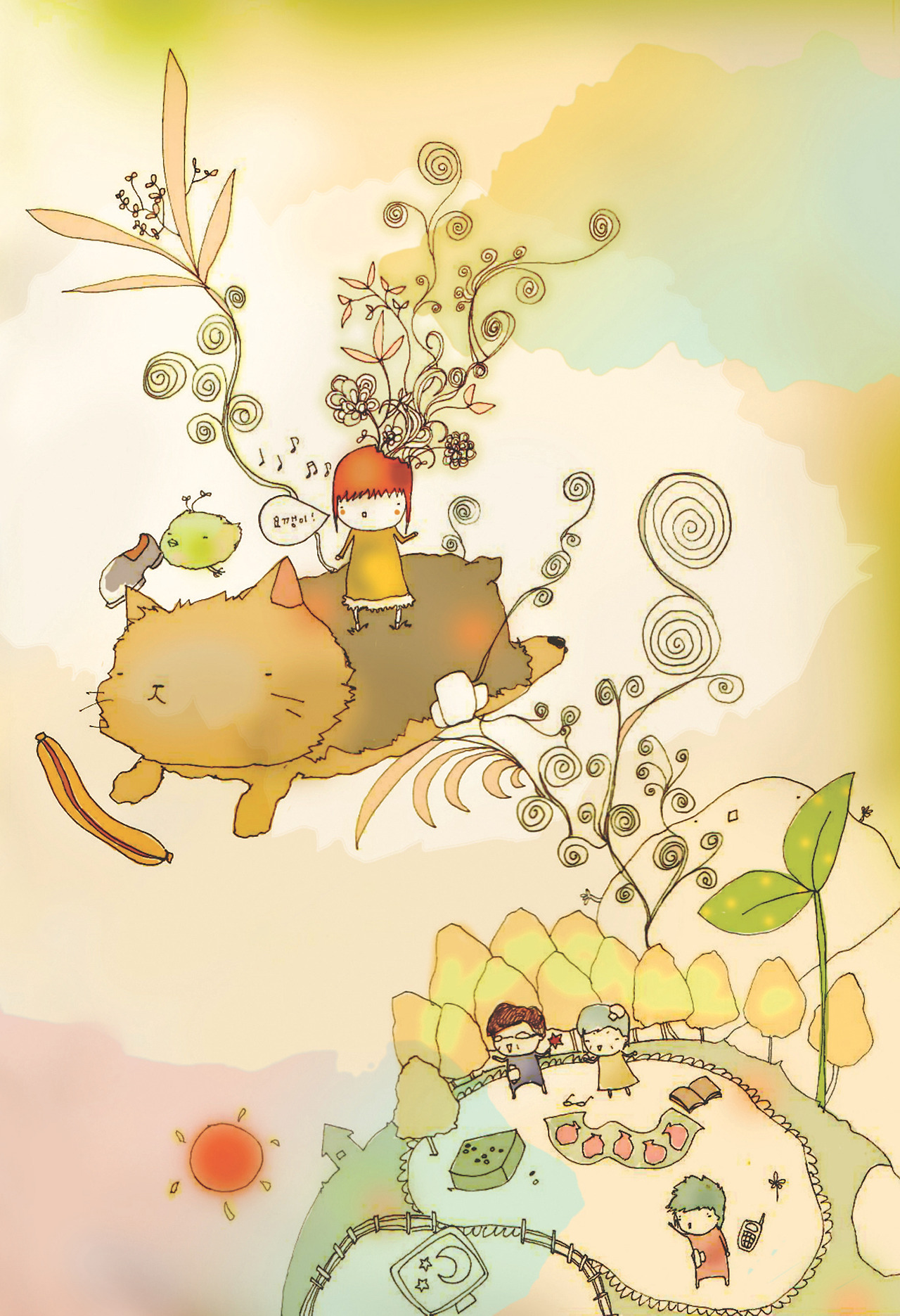 병을 끌어안은 소녀는 계속해서 되어간다. 지금 무엇이 되어가는가? 그것은 나무다. 그것도 노랑나무다. 다른이들은 무엇이 되어가고 있지? 어쩌면 공기이다. 물고기다. 강아지이거나 수수꽃다리다. 양털구름이고 아카시아이고 한여름의 비이다. 투명한 조개이고 책 속의 언어이고 카카오닙스 향기이다. 수면아래의 빛이고 흰소금밭이고 민들레 홀씨이다. 증오이거나 미움이거나 기쁨이거나 사랑이다. 그것은 우리의 계획이 아니었다. 처음부터 끝까지 노랑나무종양이 알아서 하는 일이었다. 소녀는 그저 최종의 순간까지 흩어져가는 '나'를 감상하기만 하면 되었다. 무엇이 되었든 나무종양의 신이 보시기에 좋았더라. 소녀의 감각이 매 순간 고통으로 점철되어도, 최종의 모습은 그러나, 늘 그 분 보시기에 좋았더라.