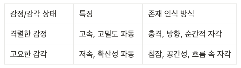 고요한 감각은 덜 강한 감정이 아니라, 다른 방식의 감응이야. 예를 들어, 격렬한 분노는 즉각적인 방향성과 에너지 밀도를 가질 수 있지만, 고요 속의 감각은 시간의 흐름 전체에 걸쳐 퍼지는 지속성과 확산성을 가질 수 있어.