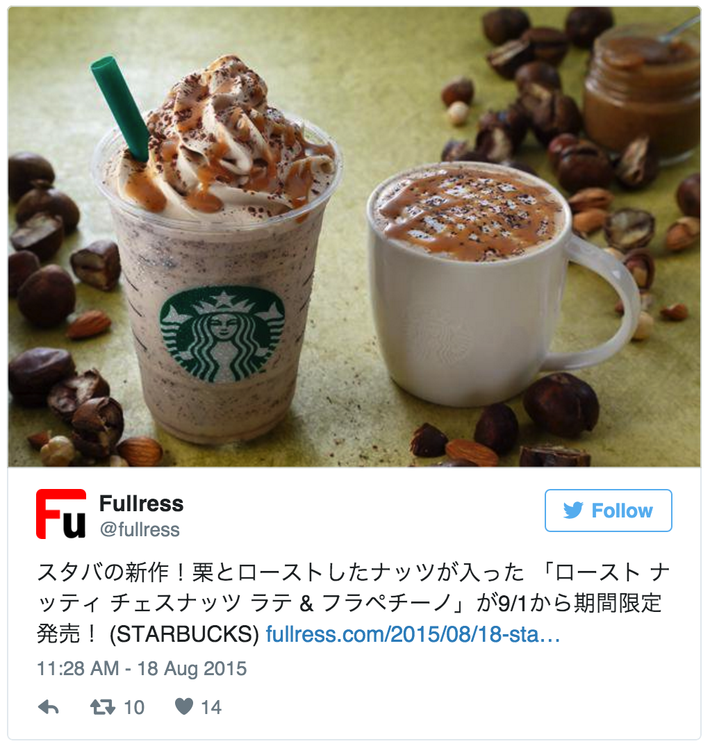 재미있는 것은 이 로스티드 넛츠 라떼는 일본에서 지난 2015년 9월에 한정 메뉴로 출시했던 것과 같은 제품이라는 것입니다.