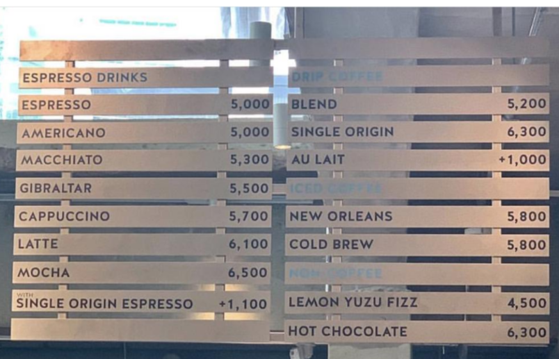 아메리카노는 5,000원 핸드 드립(BLEND)은 5200원으로 가격차이가 얼마 안 나니 방문하시면 핸드 드립을 드셔 보시길 권합니다. 17년간 이어진 철학이 응축된 대표 메뉴를 먹어봐야 그 브랜드를 제대로 경험하는 것이 아니겠어요? 그리고 라테가 맛있기로 유명한 블루보틀인 만큼 우유에 많은 신경을 써서 상하목장 유기농 우유를 사용한다고 합니다. 유기농 우유는 좀 오버인 것 같아서 유지될까 걱정되지만 매일우유를 선정한 것을 보고 역시 블루보틀이라는 생각을 했습니다. 블루보틀의 원두 브랜딩 자체가 향이 좋기 때문에 좋은 우유로 정성껏 스티밍 한 라테는 무조건 맛있을 거예요. 두 잔 드셔도 돼요. 톨 사이즈만 판매하니 두 잔 마셔도 벤티 한잔이랑 같은 양인 거예요.
