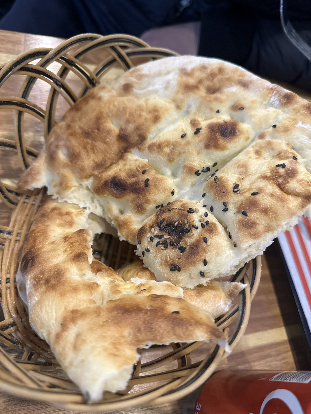 노란색으로 물든 쌀(주인이 1킬로에 12,000원 하는 비싼 쌀이라던데, 분명 폴폴 날리는 안남미인데 씹으면 찰기가 주르륵, 역시 밥집은 밥이 맛있어야 한다) 위에 양고기와 흰색 소스, 야채샐러드, 감자튀김과 맵싸한 소스가 있는 케밥과 서브웨이처럼 얇은 밀전병에 싸인 케밥에 에크멕(터키 빵), 아이란(시큼 짭짤한 마시는 요구르트)을 먹었는데 맛있다. 오도방 파트너도 만족했는지 다음에 또 오겠단다.