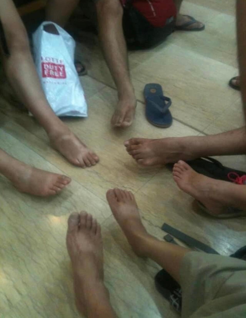 다들 맨발에 쪼리 아니면 샌들을 신고 돌아다녔다. 여행이 길어질수록 피부색은 점점 짙어졌다. 중간 경유지인 중국 어느 공항에서 누가 더 선명한 지 여행의 색깔을 견줬다.
