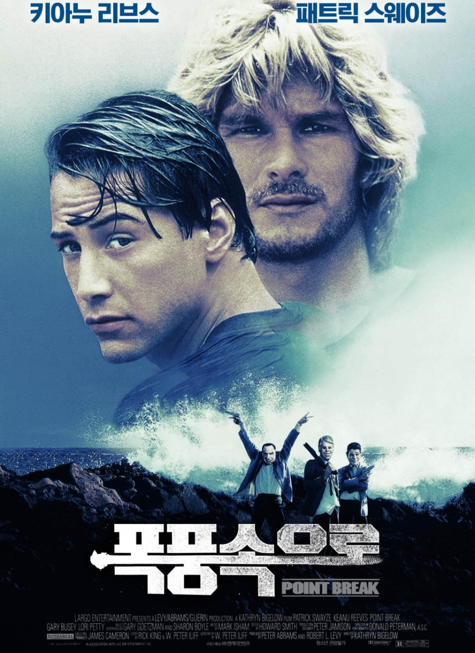 폭염 속으로는 영화 <폭풍 속으로>에서 빌려왔다. 미국 대통령의 가면을 쓰고 은행을 터는 서퍼들과 서퍼 무리에 잠입한 수사관의 이런저런 에피소드로 딱 킬링타임용 영화다. 영화 말미에 패트릭이 마지막으로 서핑 타게 해 달라며, 폭풍 치는 바다로 쏜살같이 달려가지만 노동자는 폭염 속으로 할 수 없이 들어가야 한다. 영화는 영화다.