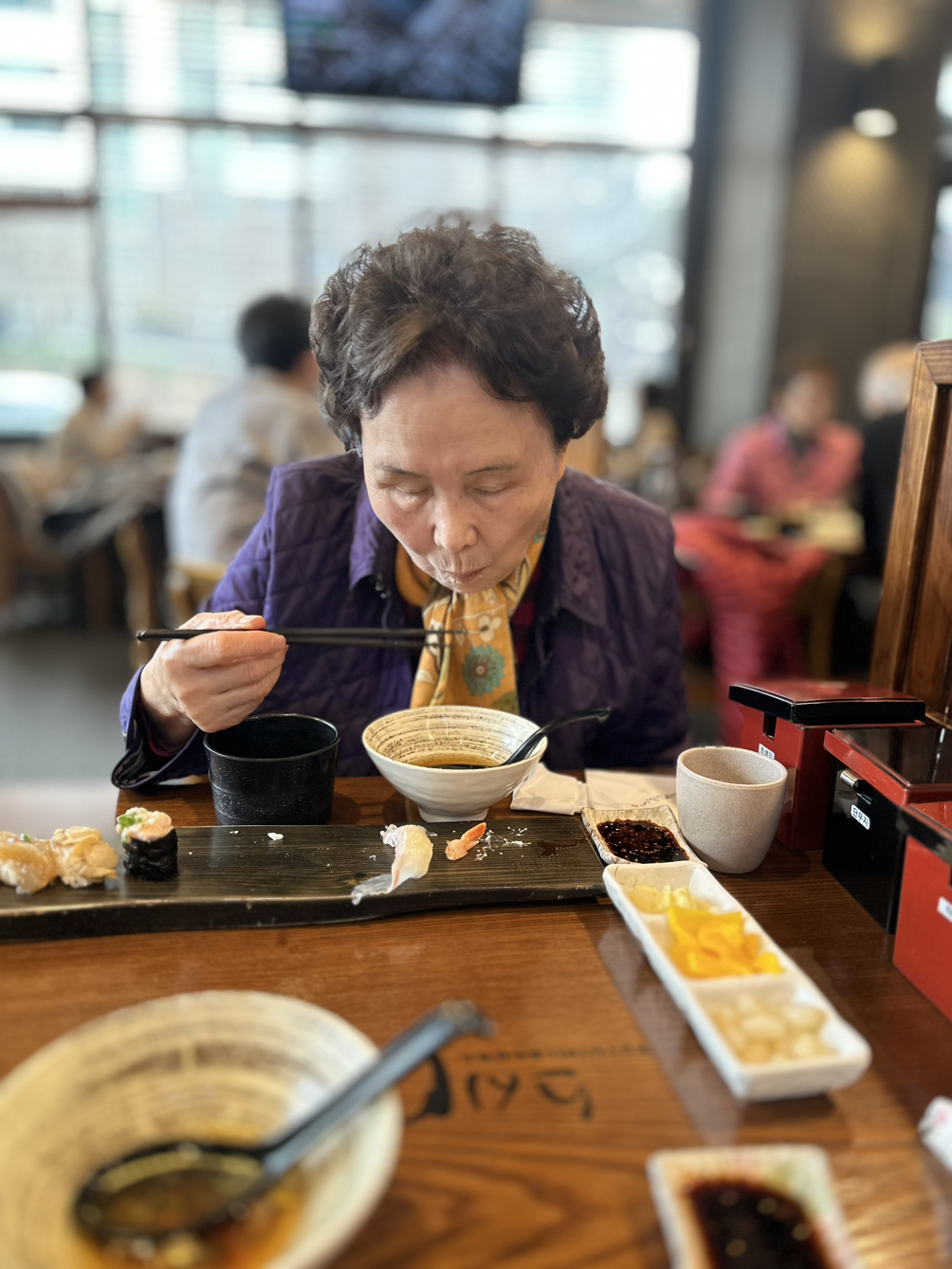 ”일찍 온나. 초밥이나 이런 거 나가서 묵게 “