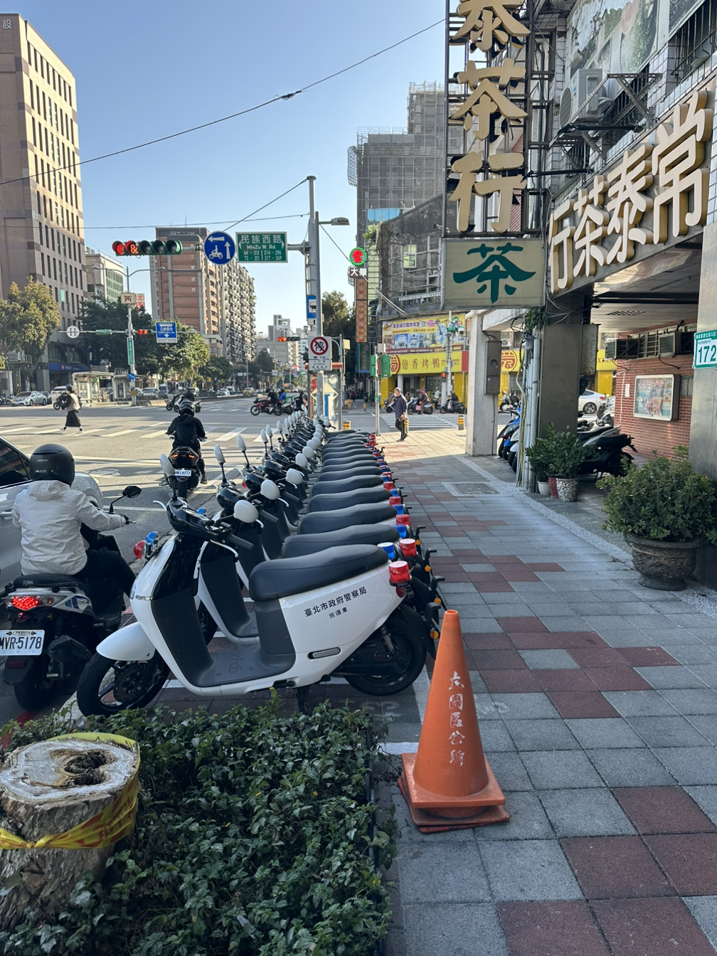 어딜 가도 오토바이가 오와 열을 맞춰 칼각으로 주차되어 있다. 심지어 오토바이 전용도로에 오토바이 주차구역이 따로 있고, 전용주차장도 있다. 정확하게는 오토바이가 아니라 스쿠터다. 타이페이에 일주일 머물며 본 오토바이는 매뉴얼 스쿠터 뿐이었으니.