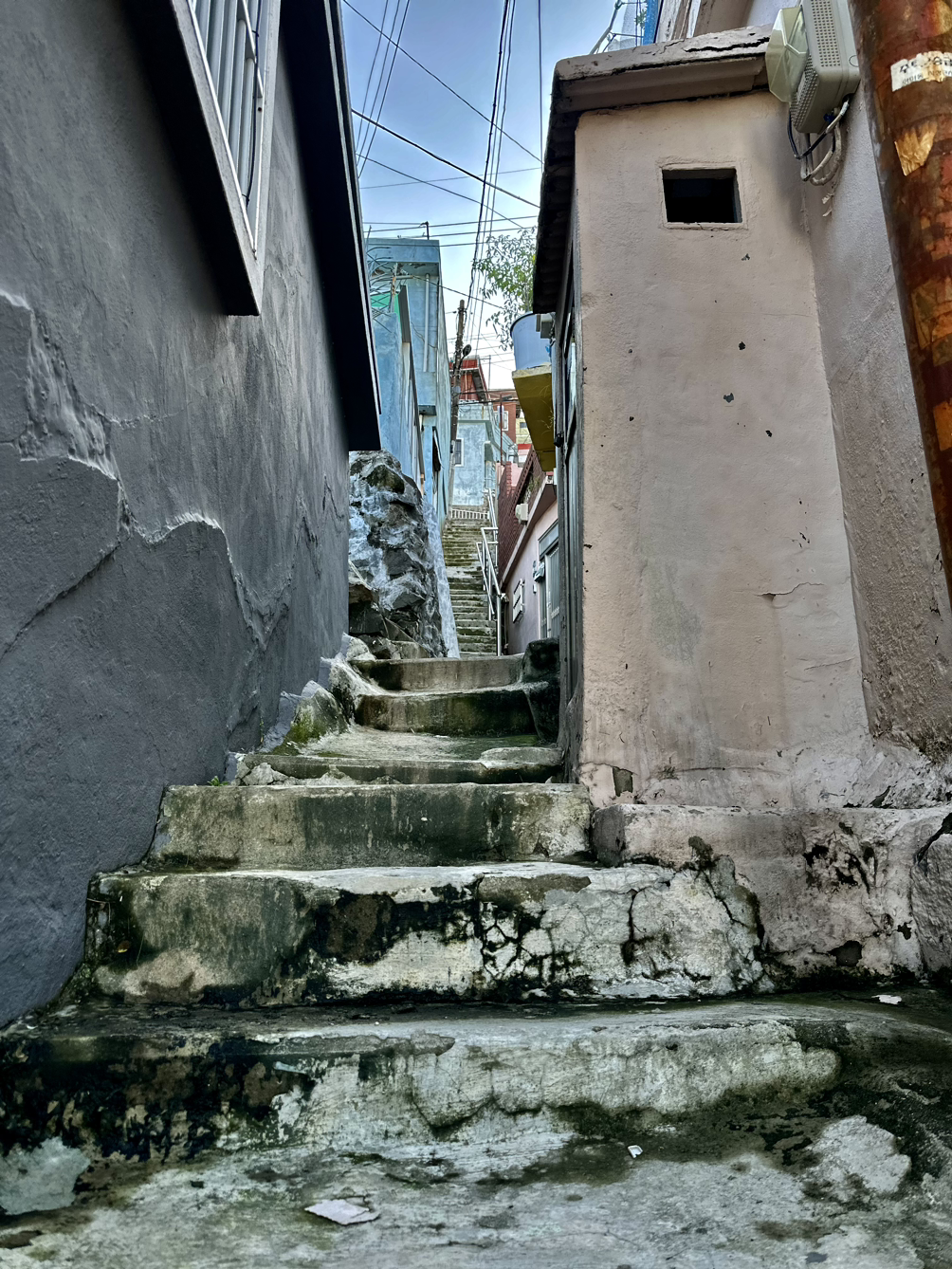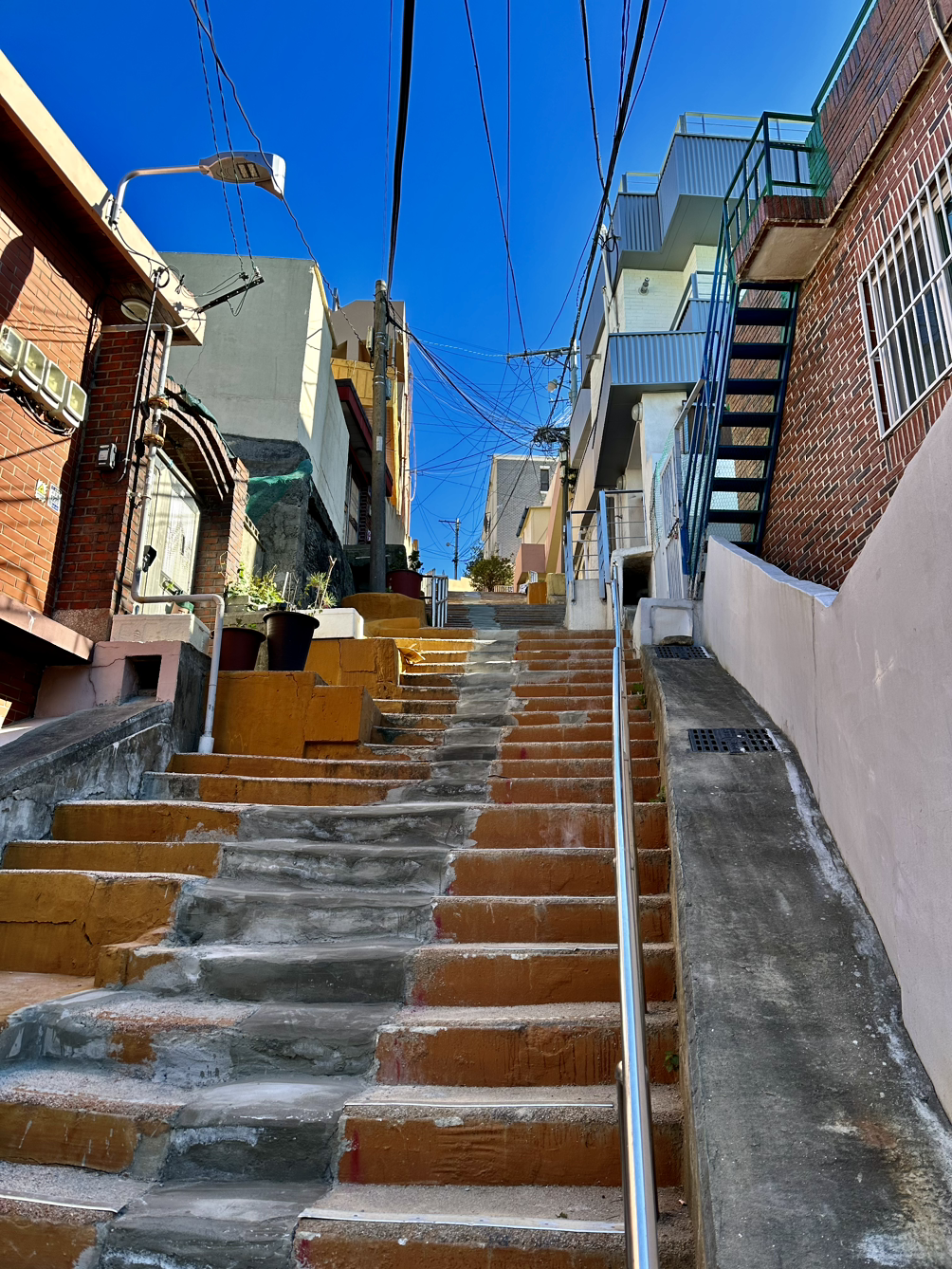 지번만 있는 산동네에서 심심치 않게 만나는 계단, 천천히 걸어 올라도 숨이 가쁜데 쌀, 고양이 모래, 세제, 페트병 음료가 배송물품이면 아이고~ 곡소리와 함께 씨발씨발이 자연스레 나온다. 심정지 올 수도 있는 천국행 계단이다.