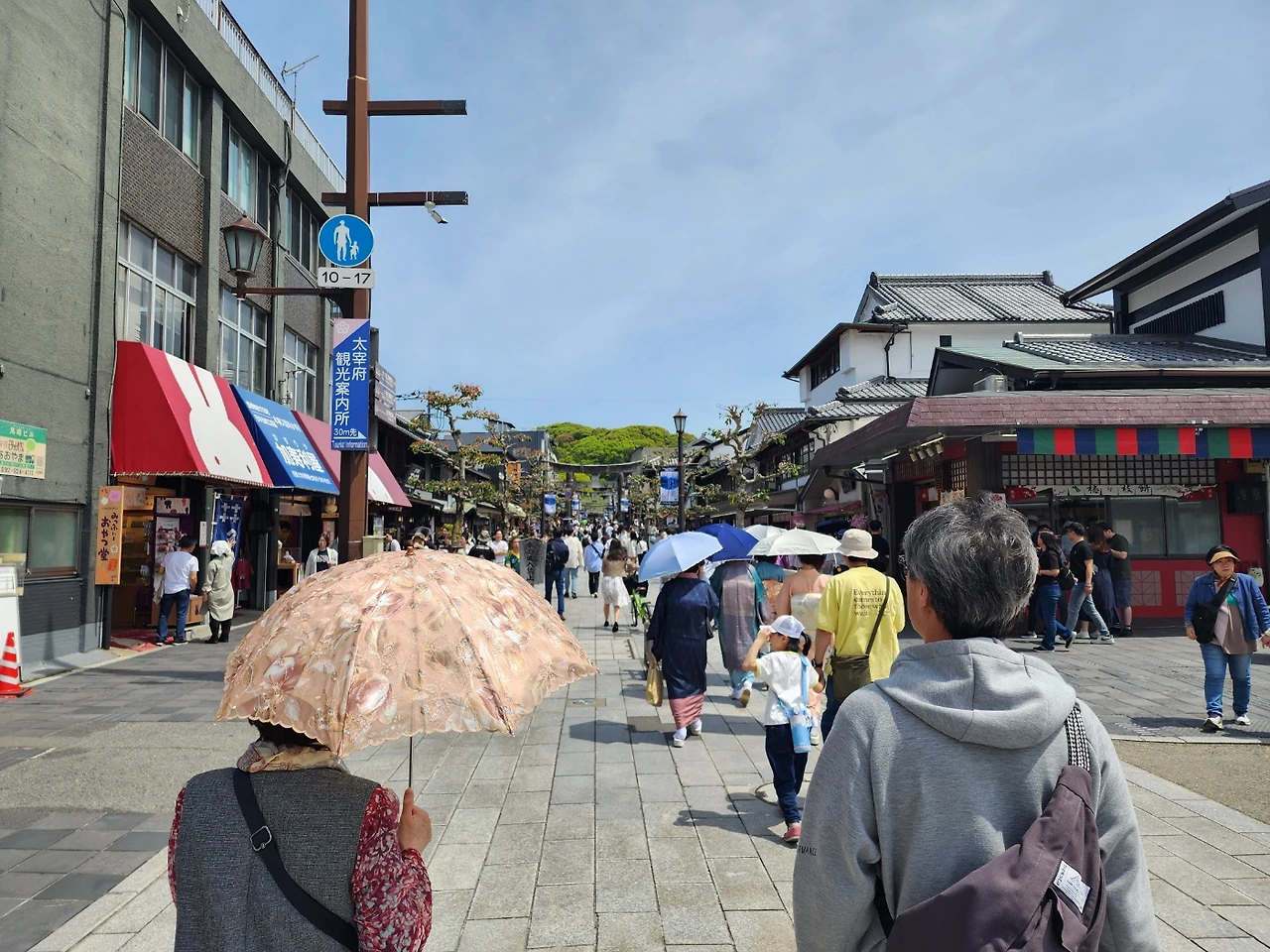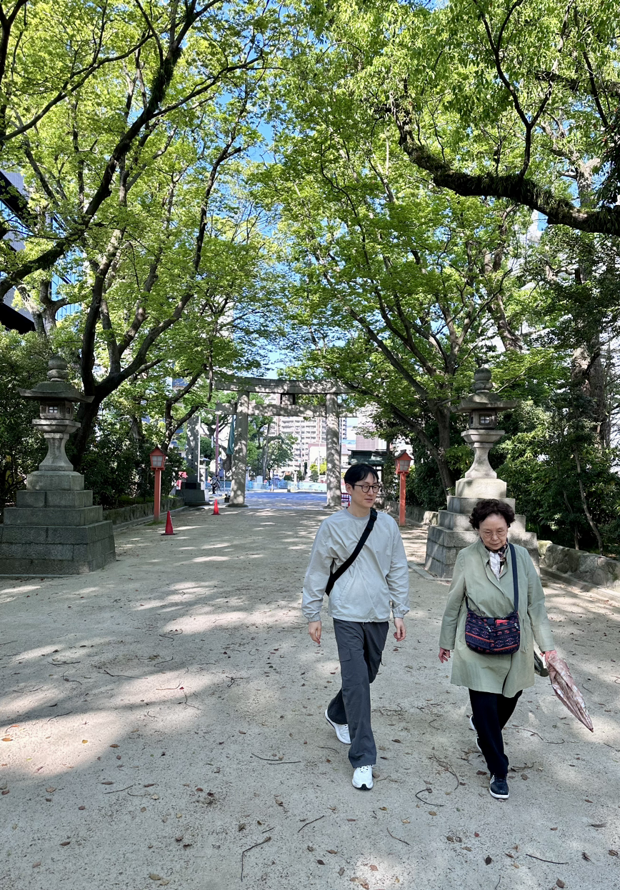오전은 숙소에서 10분 정도 거리에 있는 신사를 갔다 오기로 했다. 골목을 걷던 엄마에게,