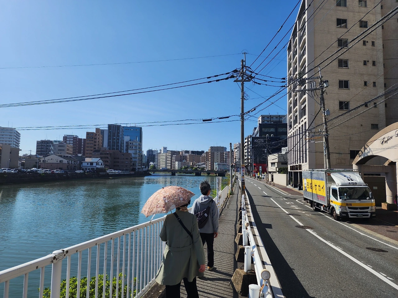 어제 갔던 오호리공원은 작정하고 조성한 곳이라 예외라 하더라도 숲과 큰 나무가 있는 사찰과 신사가 후쿠오카 시내 곳곳에 있어 산책하고, 쉴 틈을 줘서 좋다. 아침 일찍이어서 그런지 사람 별로 없는 조용한 신사를 이런저런 얘기를 나누며 걸었다. 근처 동네 시장을 들렀는데, 가는 날이 장날이라더니 문 닫은 날이다. 천변을 천천히 걸어 숙소로 돌아왔다.