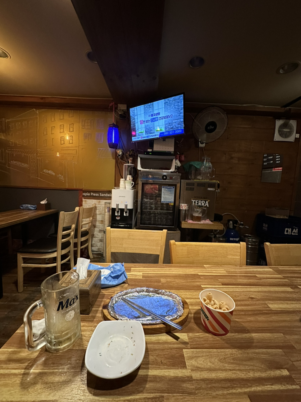한쪽 벽에 켜진 TV에선 또다른 현실을 알려주는데, 멍하니 보며 맥주를 홀짝 거리는 장면이 일본 영화에서 본 손님 없는 한적한 술집 같다. 생맥주 마시러 가끔 와야지 했는데 오판이었다. 그 날만 손님이 없었을 뿐 이미 혀가 살짝 꼬인 5060 중년 남자들로 북적댔다.