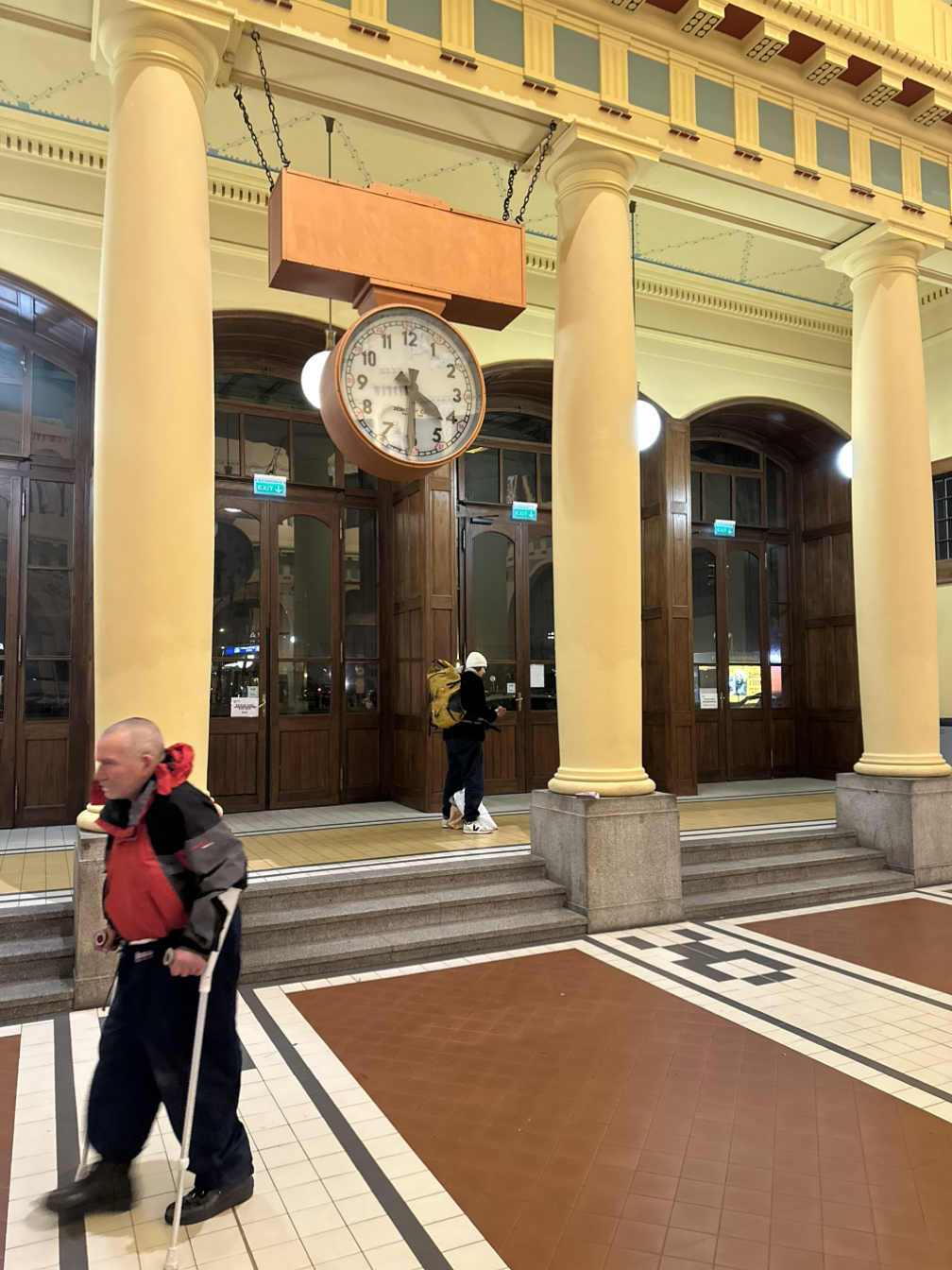 달리 갈 데도 없고 할 것도 없어 추위나 피하자 싶어 역내 의자에 자리 잡았는데, 마감과 개장 시간(00:30~03:30) 사이에 청소와 재정비로 역내에 머물지 못하게 경비들이 사람들을 내보낸다.
