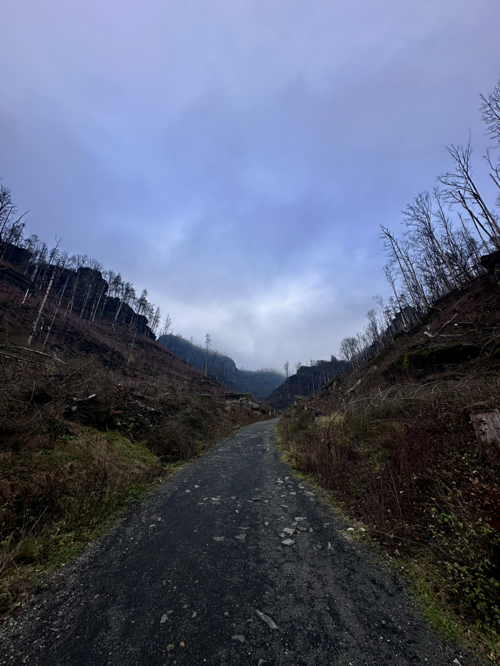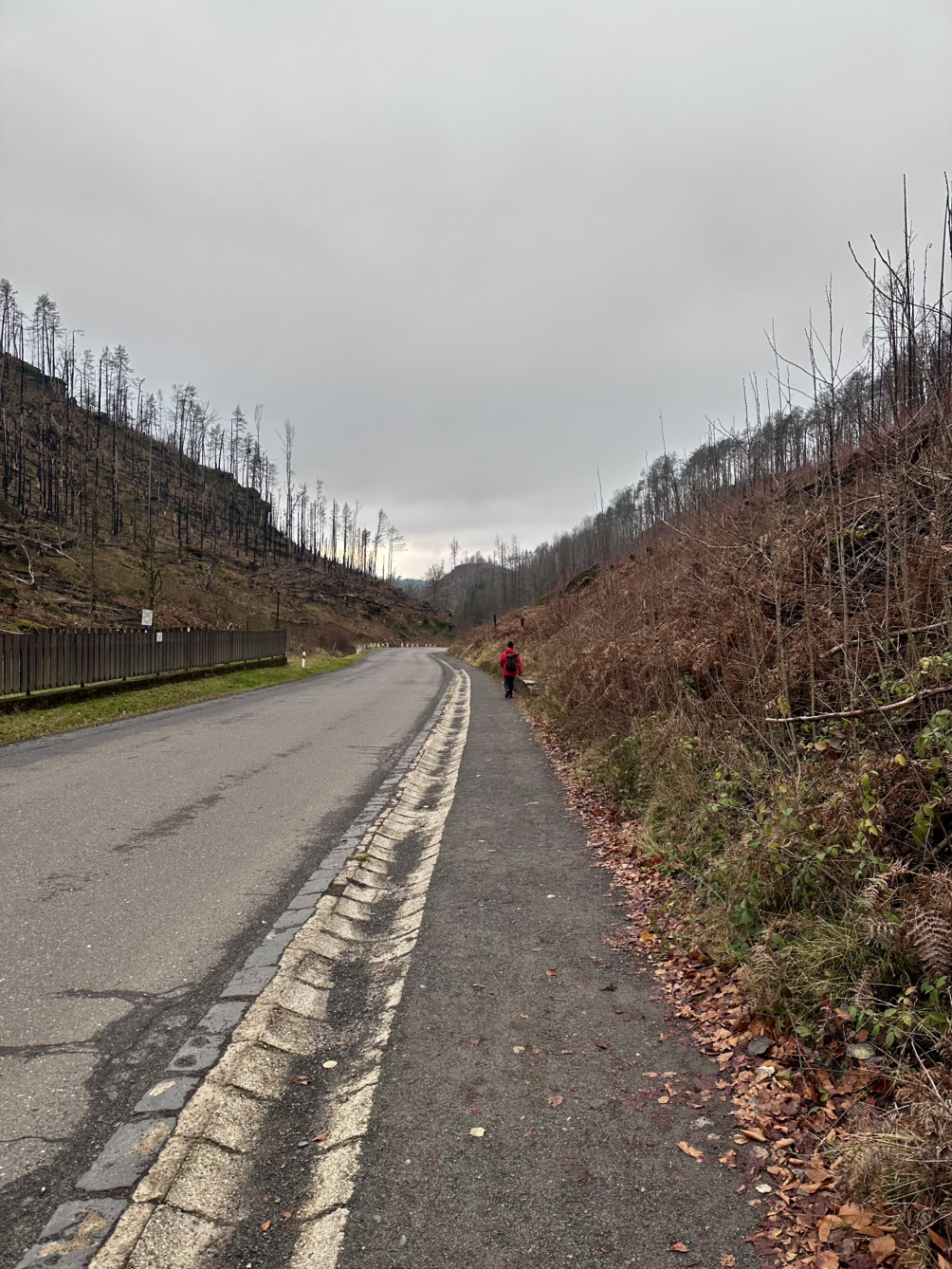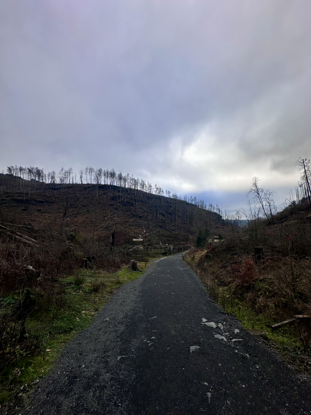 버스기사가 정류장에서 2km 정도 올라가면 된다는데, 허~ 산불이 크게 났었나? 검게 그을린 채로 서있거나 여기저기 잘린 나무들이 초입부터 즐비하다. 완만한 오르막이라 그리 힘들지 않게 오를 수 있다.