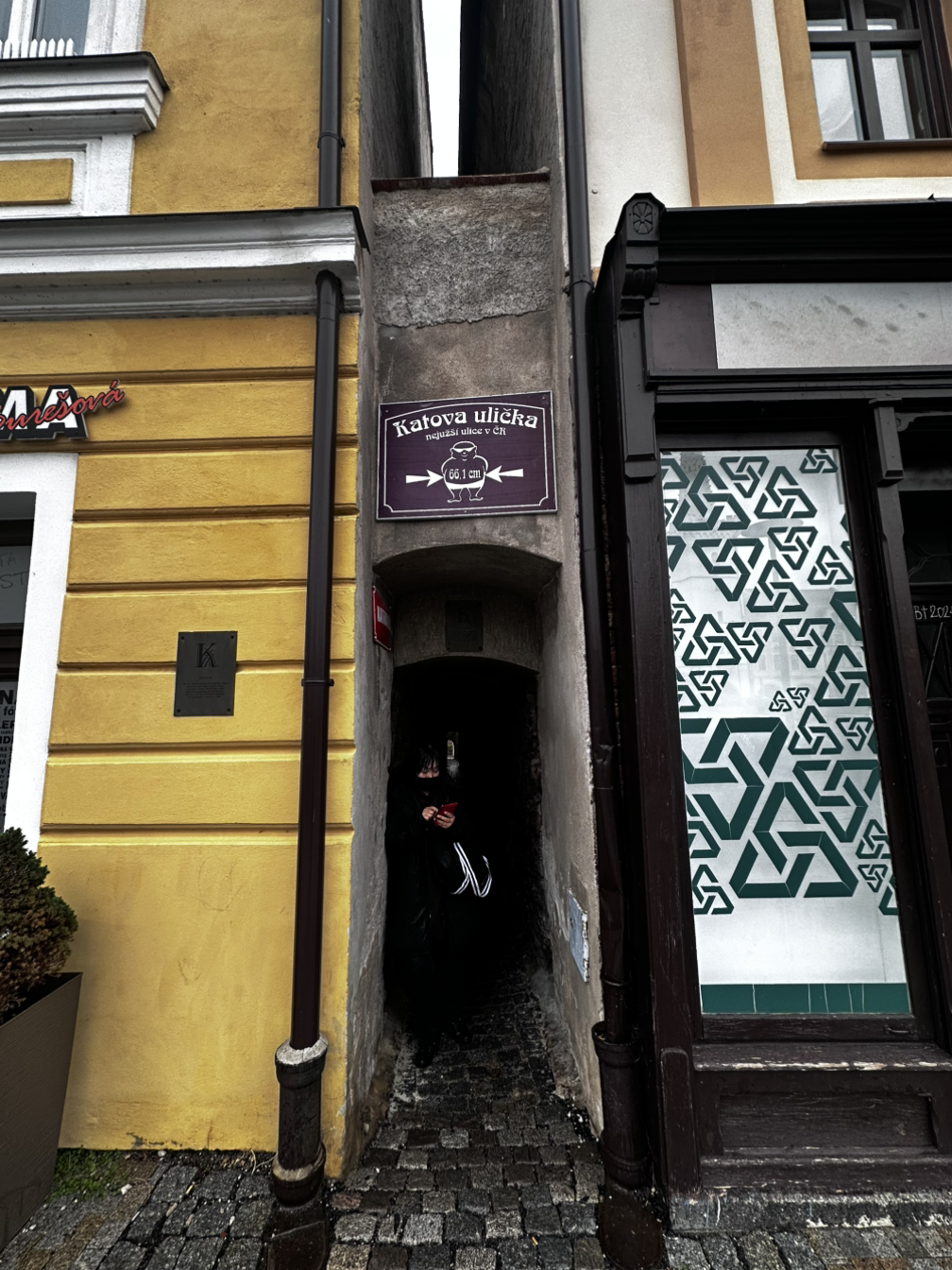 구글 AI가 길 자체가 매우 좁아 표시를 발견 못하면 놓치기 쉽다더니, 얼마나 좁기에? 부슬부슬 비는 내리는데 오히려 기대감은 커진다. 분명 이 근처가 맞는데… 찾지 못하고 한참을 헤매다가, 공사 자재를 나르고 있는 현지민에게 "Kde je Neju2 si ulice?"(좁은 길이 어디에 있나요?") 물었더니, 뭔 말인지 못 알아듣는 표정으로 고개를 갸우뚱하기에 몸짓으로 아주 좁은 틈을 비집고 게걸음으로 지나가는 동작을 하며 "아주 좁은 길. 좁아" 했더니, 오야지 같은 사람이 젊은 친구에게 뭐라 뭐라 말한다. 말이 안 통하니 직접 데려다주려는 듯 그 친구가 성큼성큼 앞서서 걷기에 따라갔다. 어느 골목 앞에서 체코말로 뭐라면서 씩 웃는다. 아휴~ 너무 고마운데, 그저 "데꾸이, 데꾸이"만 연발했다.