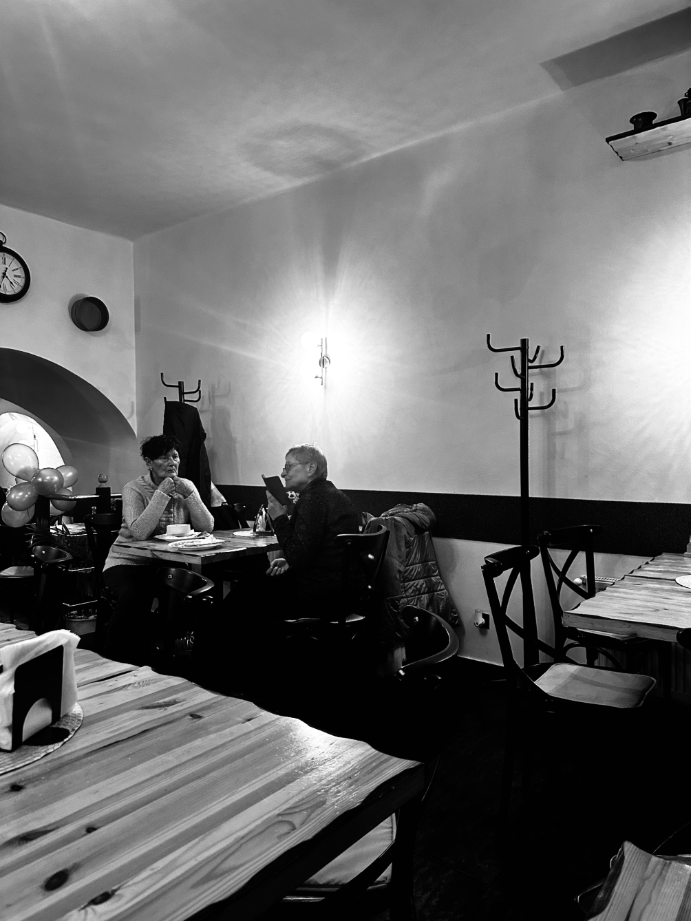 수저를 안 줘서 여기 수저 없어요 동작을 취하는데 옆 테이블 손님이 네가 앞쪽에서 가져오라며 바디랭귀지를 해준다. 그러고 보니 손님들이 자기 음식을 입구 쪽 주방에서 직접 들고 온다. 말이 안 통하는 관광객이라 음식은 가져다준 듯하다. 그러고 보니 메뉴도 2~3 종류인걸 보니 비수기에 주민들에게 식사를 제공하는 (준공영) 급식소 같은 걸까? 음식 종류 가리지 않고 잘 먹지만 가격 대비 맛의 호불호는 있는데 감자전덮밥은 괜찮다. 누님도 맛있단다. 굴라쉬는 약간 짭짤한데 맥주와 궁합이 좋다. 음식과 술, 떼려야 뗄 수 없는 관계 아닌가?
