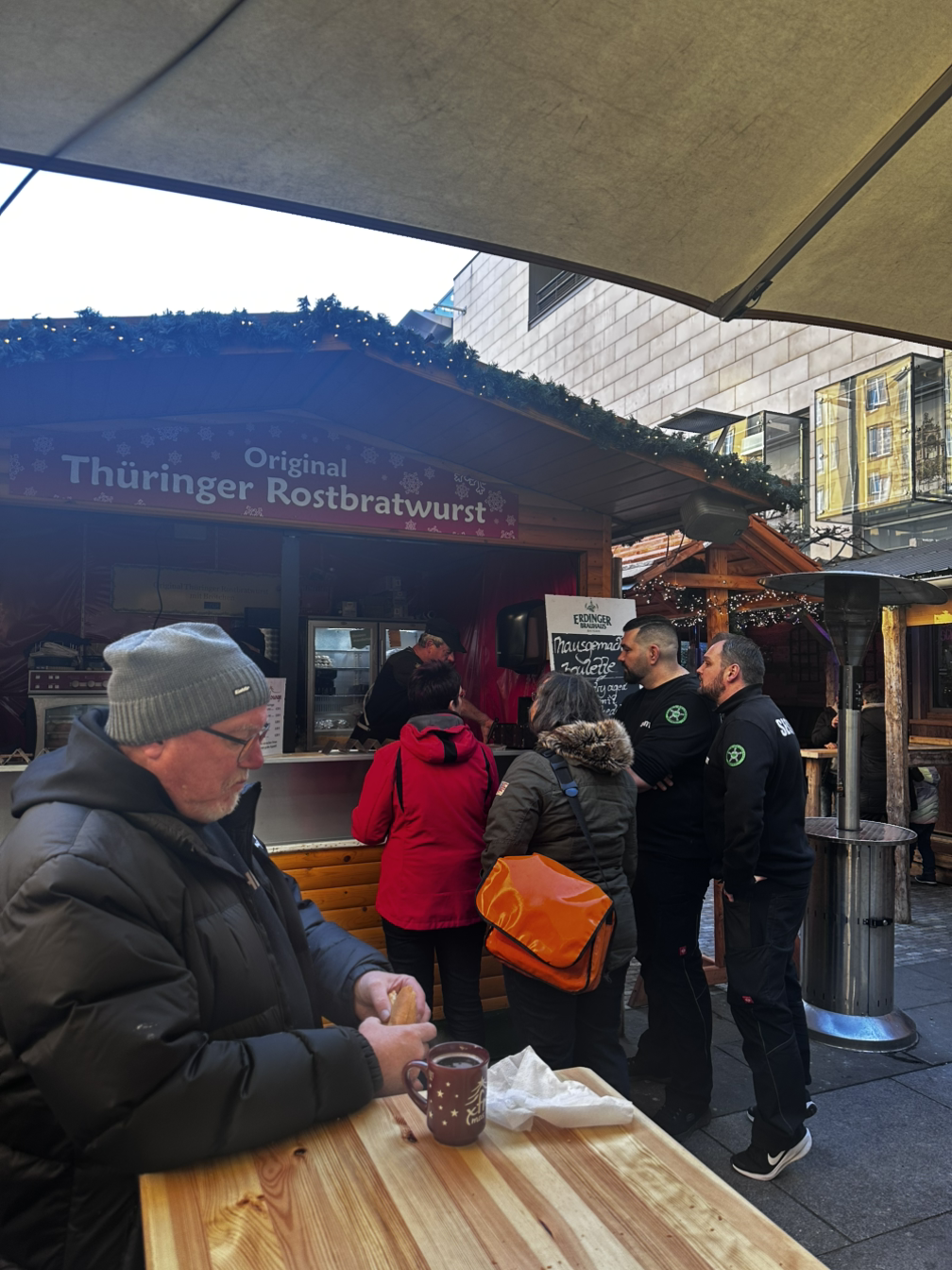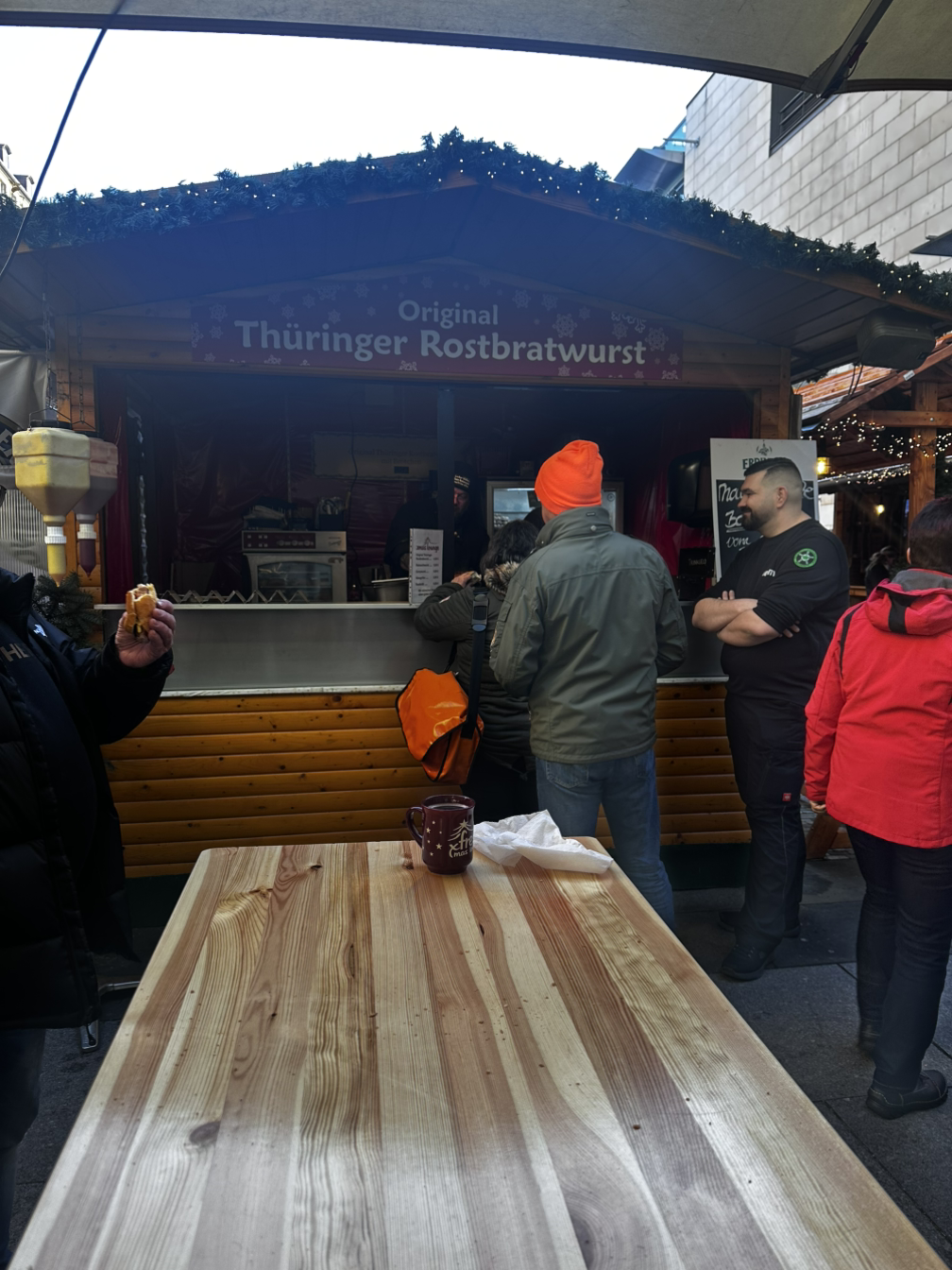 독일 하면 소시지 아닌가? 오리지널 튀링어 소시지를 빵에 끼워 파는 가게 앞에 사람들이 줄을 선다. 맛있나? 궁금하네. 그럼 먹어야지.