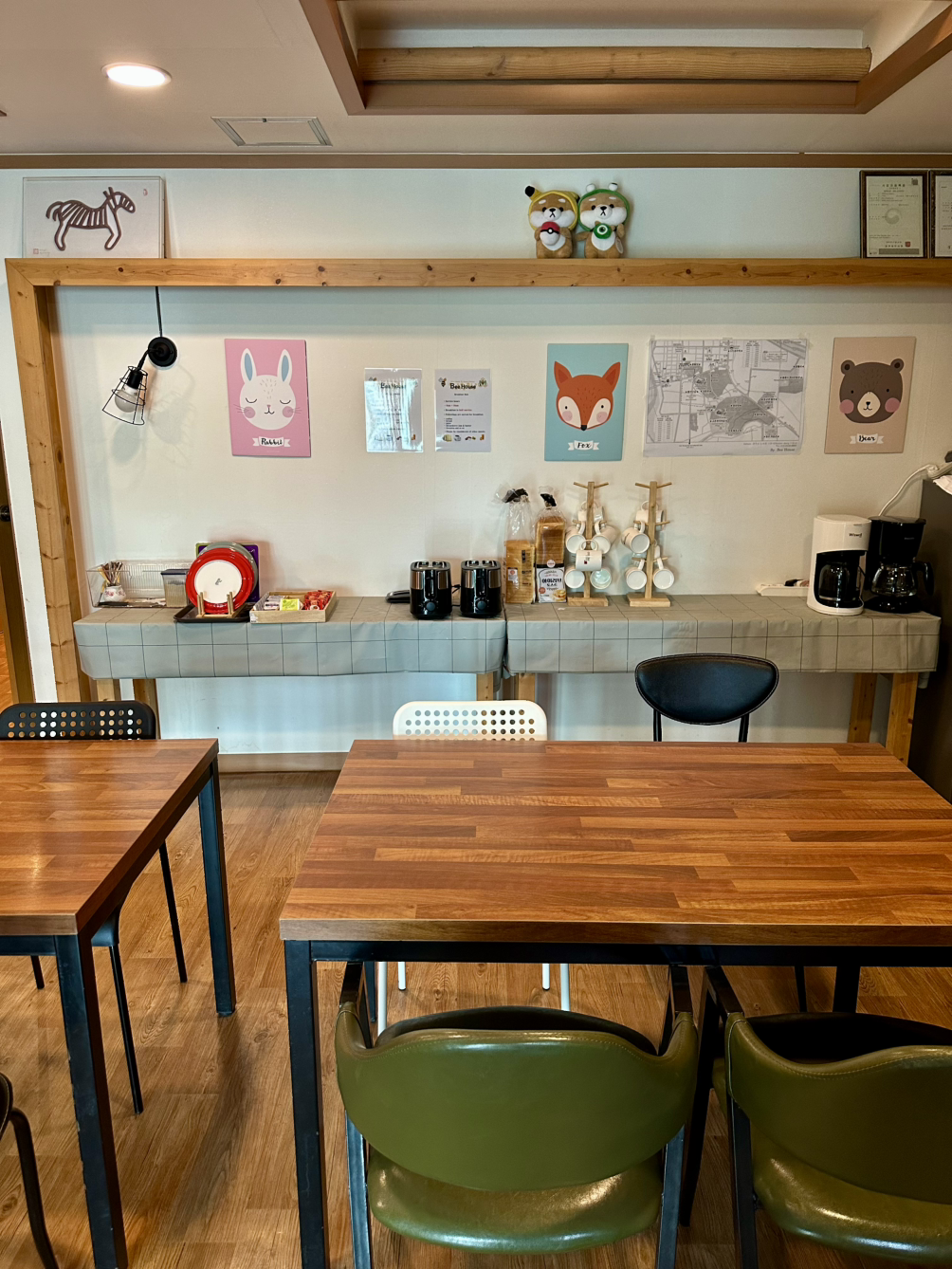아침 8시부터 10시까지 간단한 아침식사를 제공한다는 안내문을 봤었다. 1층으로 내려오다 식사 중인 흑인계 여성과 눈이 마주쳤다.