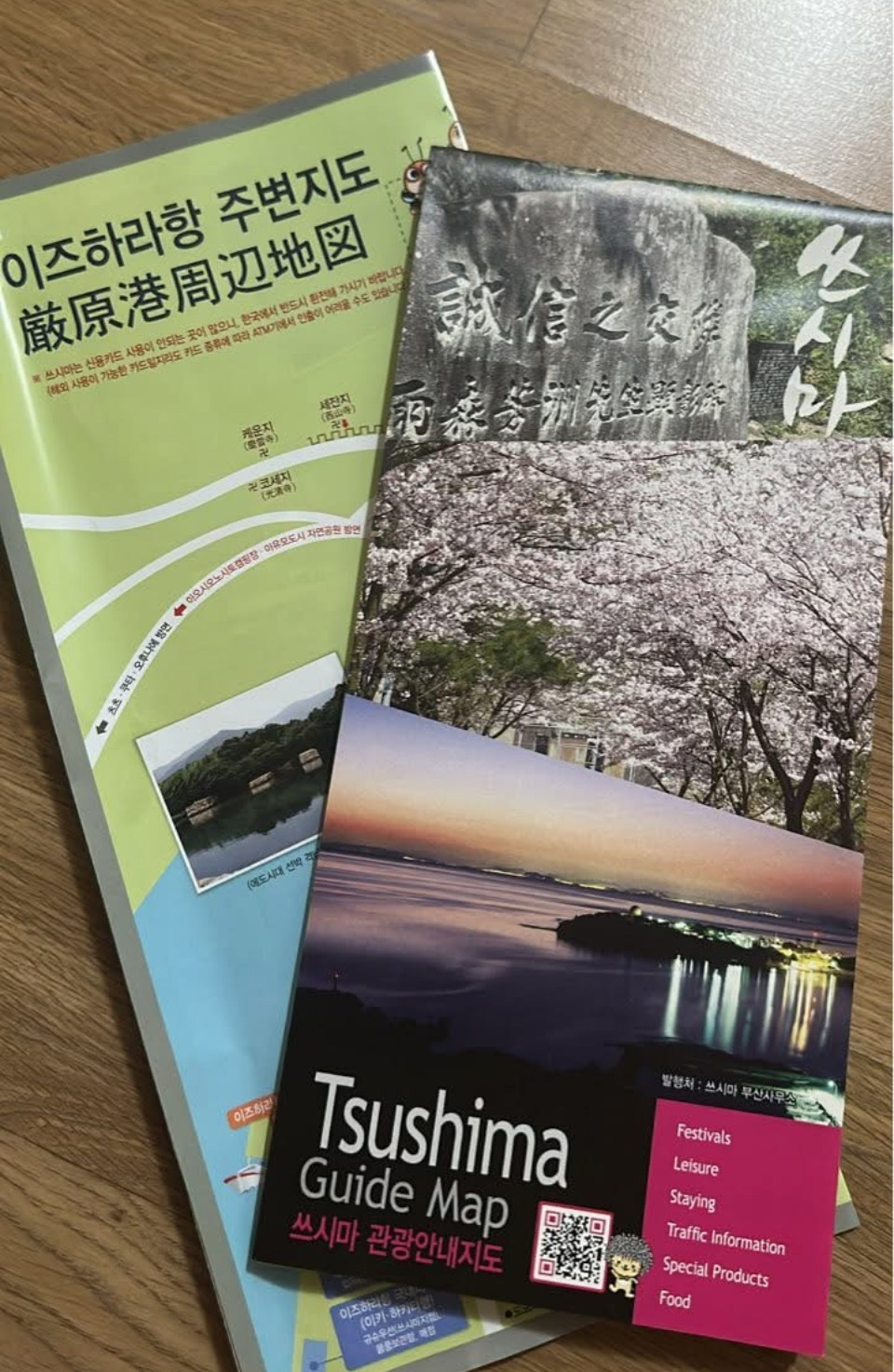 너무 가까운 거리라 가볼 생각을 안 했고, 관심도 없었다. 가까워서 가기 용이한 낯선 곳이 어떤 지, 합이 맞는지 2박 3일 살펴보고, 마음에 들면 다음번엔 길게 머물자 싶어서. 쓰시마 부산사무소에 요청해서 우편으로 지도를 받고, 자료를 찾아봤다. 남북으로 긴 산악지형인 섬이라 남쪽 이즈하라와 북쪽 히타카츠에 숙소를 잡았다. 역사유적보단 자연환경이 우선이고, 해산물이 풍부할 것 같은데, 인구 소멸지역이라지만 사람 사는 동네면 술집이나 식당은 있겠지. 그럼 된다.