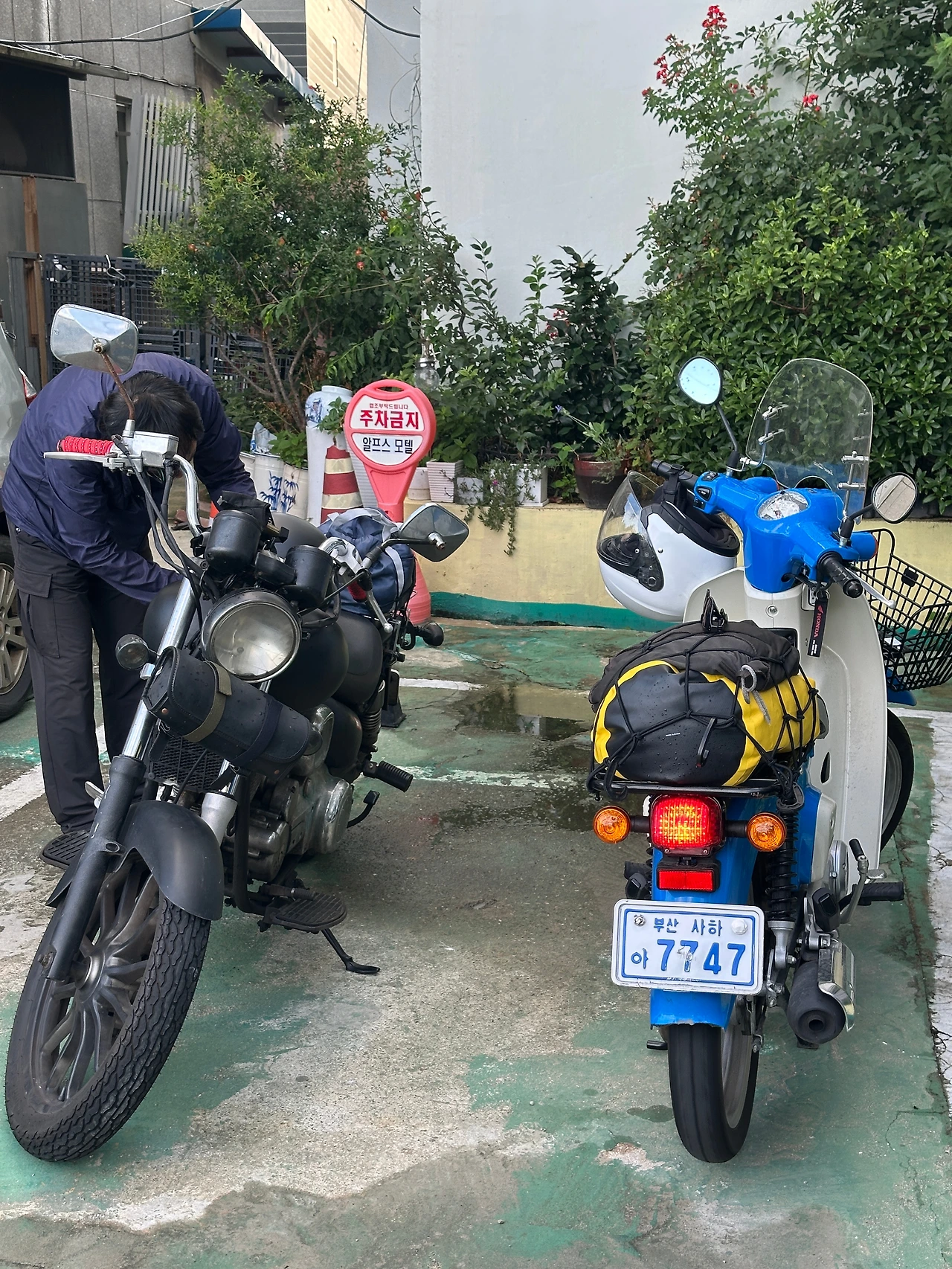 슈퍼커브 110을 사고 오토바이 타는 맛에 빠져있을 때 그를 충동질했고, 그는 연식이 오래된 데이스타를 중고로 샀다. 나는 2023년 신형이지만 80km 이상의 속력을 내면 자신의 한계를 감당하기 어려워 차체가 부들부들대며 터질듯한 약한 심장을 가졌고, 데이스타는 아메리칸 크루저방식을 흉내 낸 외관 덕분에 엄청난 힘을 가진 듯 보이지만 실상은 70km 이상을 밟을 수 없다. 차량 성능이 비슷하고 둘다 속도에 관심이 없는지라 휴무일이 맞으면 부산 근교를 당일로 돌아다녔다.