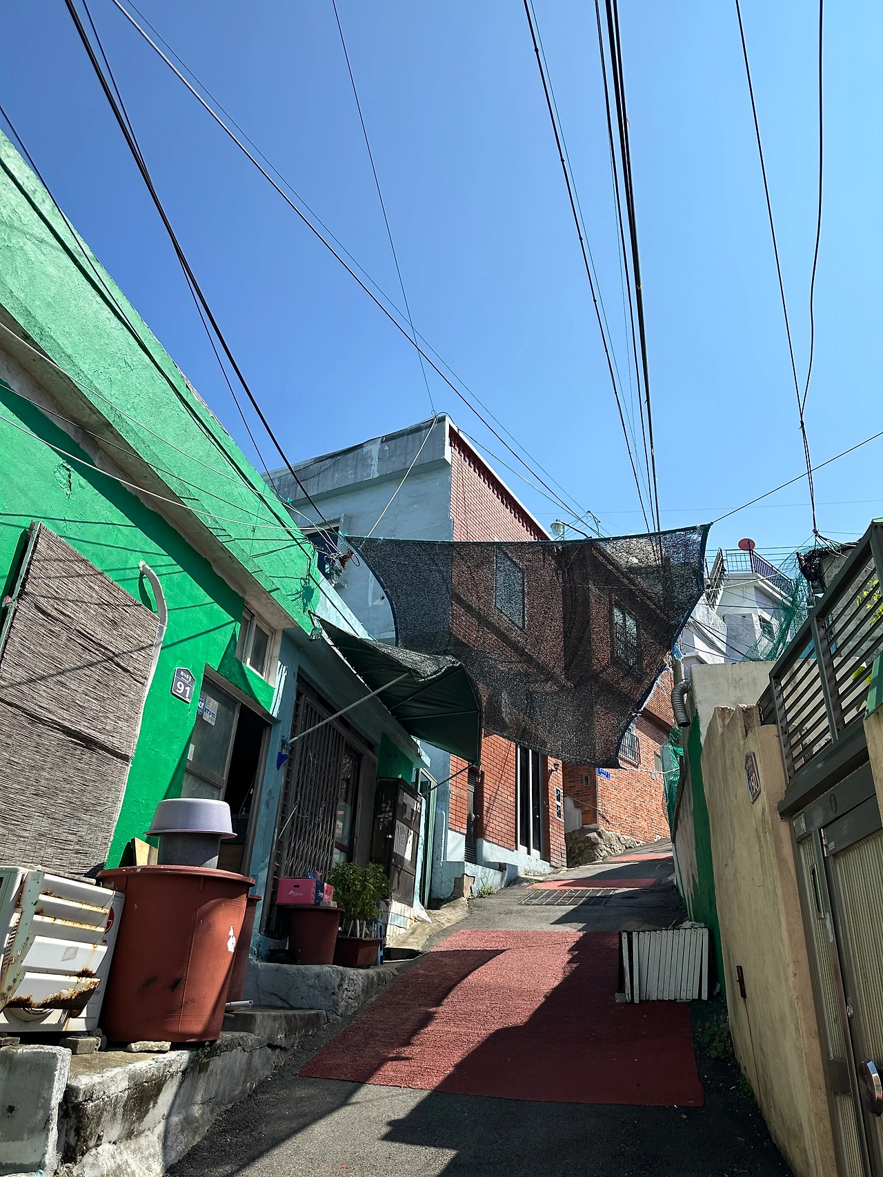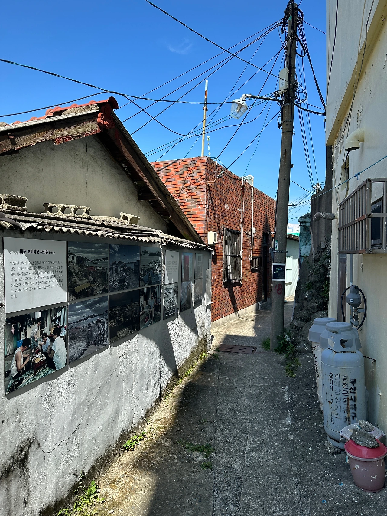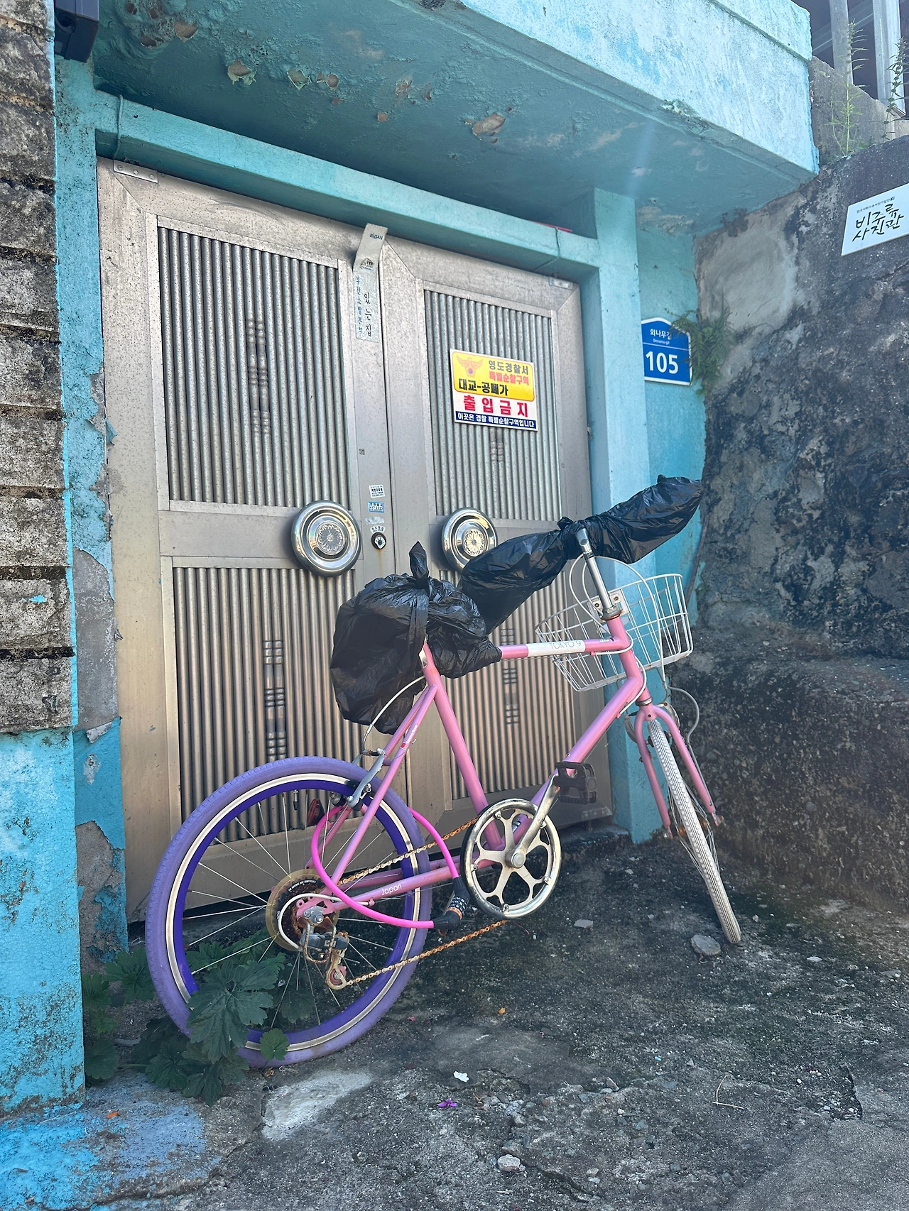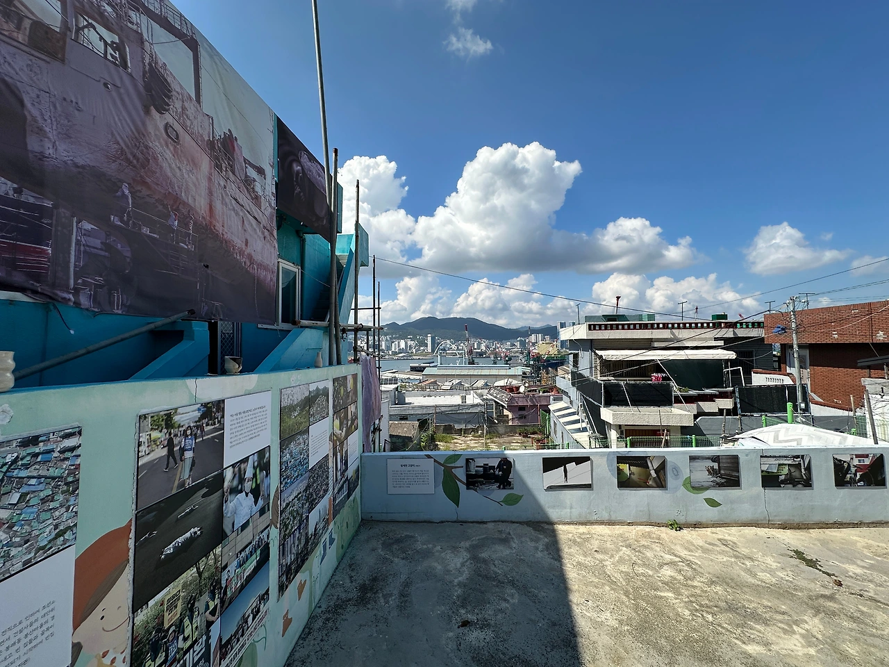 페친 덕분에 알게 된 #비주류_사진관 보려고 오토바이 타고 영도로 쓩쓩~ 웬만해선 슈퍼커브가 못 가는 길이 없는데, 불규칙한 계단이 있는 좁고 비탈진 골목길이라 걸어야 했다. 골목길 군데군데 여러 작가의 사진 작품이 걸려있는데, 명색이 야외전시인데 형식이 많이 아쉽다. 정한 바 없이 이리저리 걷다가 집과 집 사이에 난 틈으로 예전에 조선소가 있었던 곳이 조선소 크레인보다 더 높은 아파트로 바뀐 모습으로 보인다. 조선산업이 한창 번성했을 때 영도의 크고 작은 조선소와 관련 업체에선 노동자가 필요했을 것이다. 먹고살려고 영도로 모여드는 사람들이 많아질수록 어쩔 수 없이 전망 좋은(?) 집을 짓기 위해 산 위쪽으로 올라갈 수밖에 없었을 것이다. 그렇게 마을이 만들어졌고, 산복도로가 생겼을 것이다.