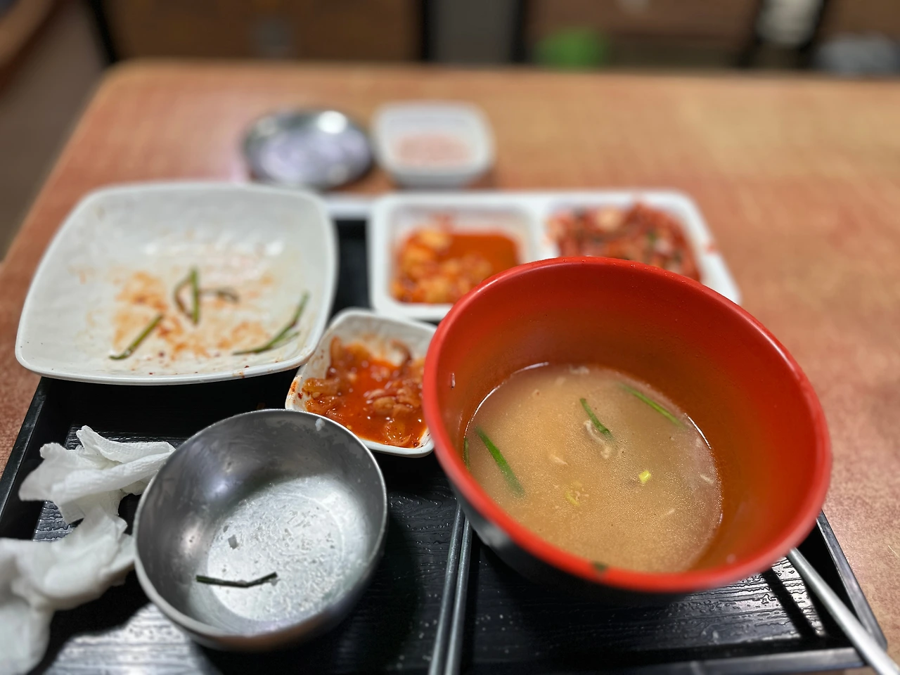 3. 국물이 담백하고 플라스틱 국그릇에 담겨 나와서 첫술부터 먹기 편한 온도다. 오도방때문에 소주 못 먹는 게 슬플 뿐.
