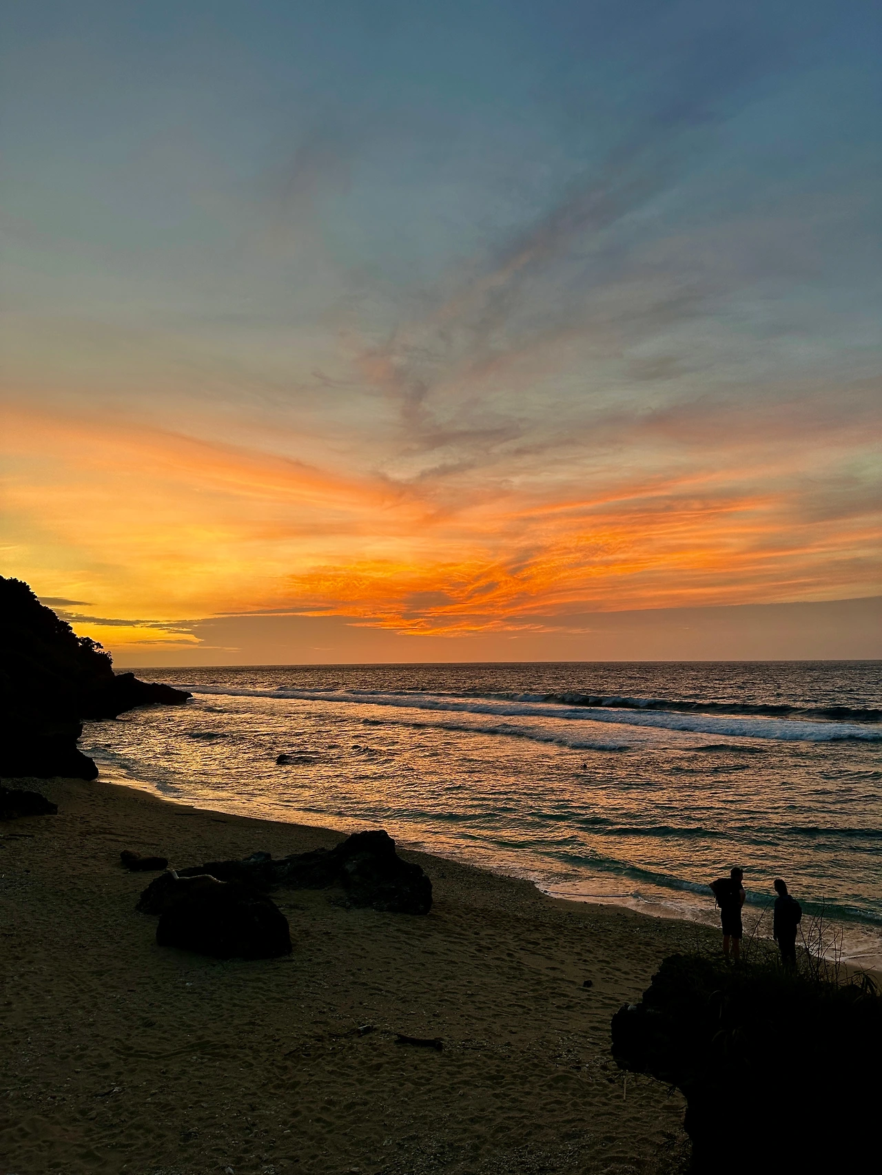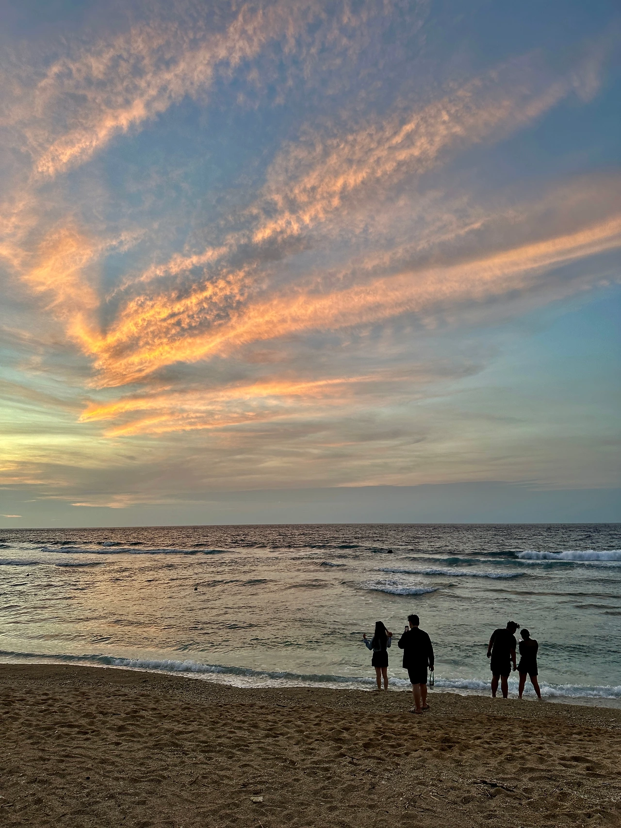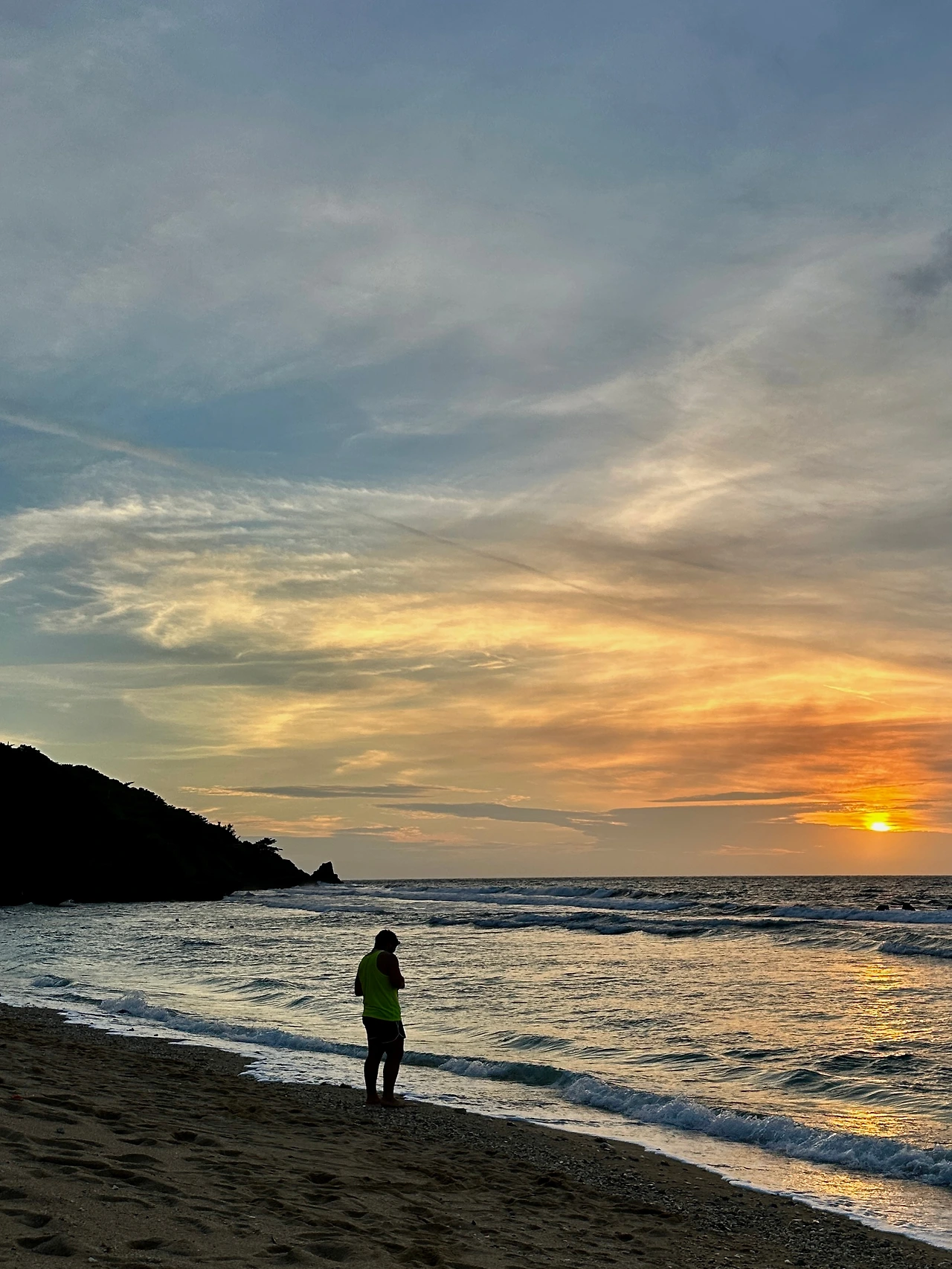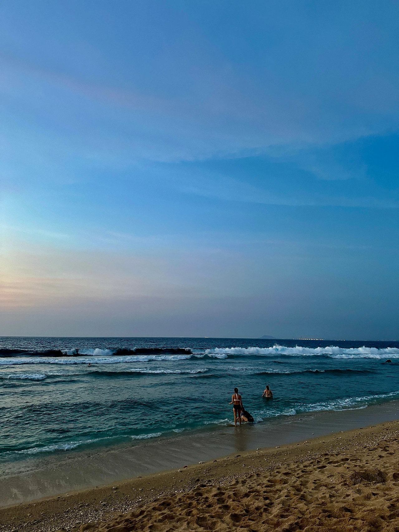 해가 지는 시간대가 되자 작은 해변에 일몰의 광경을 보러 사람들이 모여들고 바다 건너 가오슝 쪽 빌딩에 불이 들어오기 시작했다. 예전에 알을 깨고 나온 바다거북이 바다가 아니라 더 환한 불빛이 있는 도시 쪽으로 가다 죽는 걸 다룬 다큐멘터리를 본 적이 있는데 여기 젊은이들도 저 불빛을 따라 이 섬을 떠났을까?