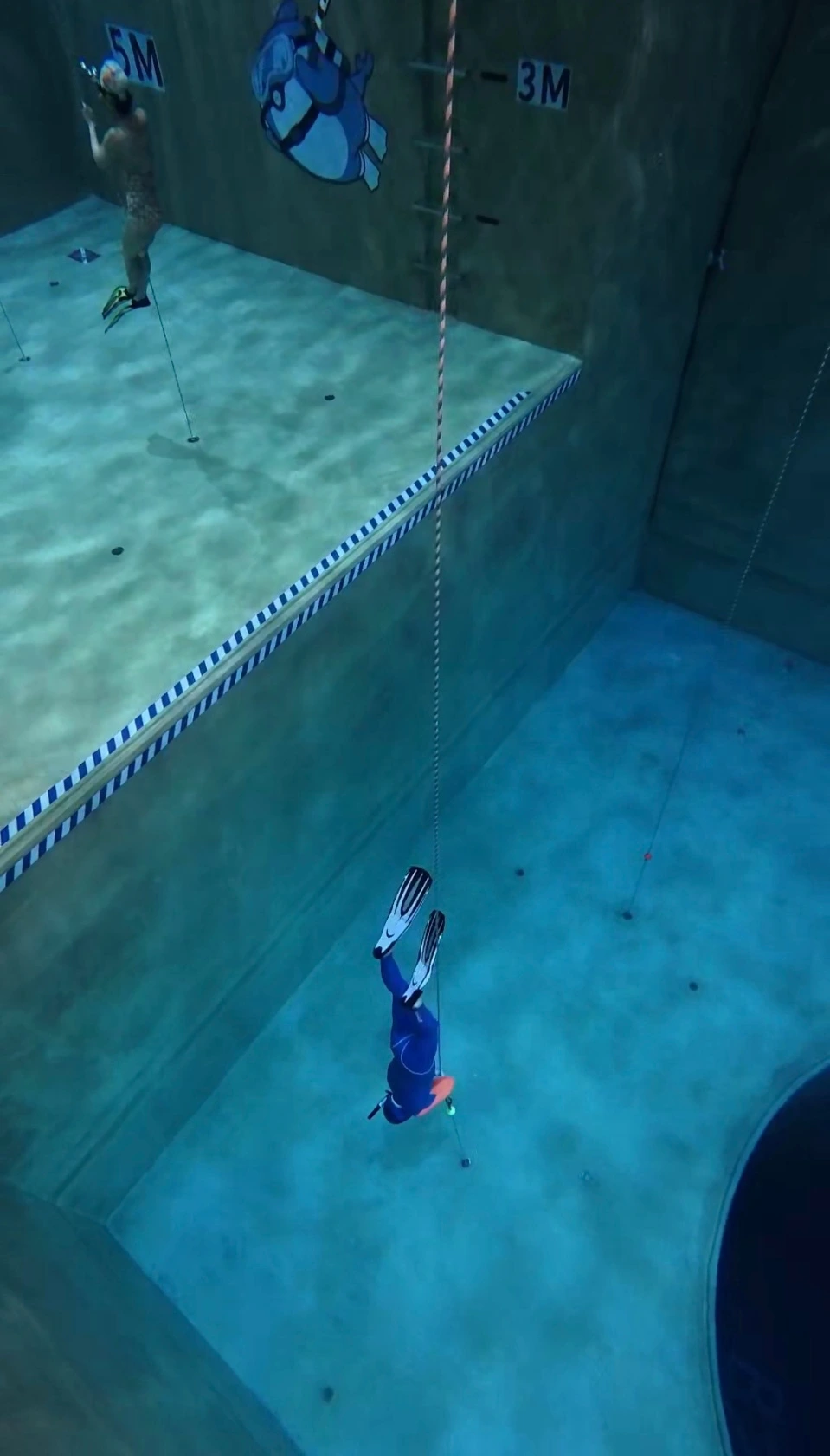 이번엔 레그퍼스트로 몸 푸는 걸 생략하고, 라인(라이프 가드) 잡고 헤드퍼스트로 10m 내려가는 걸 바로 시작했다. 지난번에 한 번 해봐서인지 긴장이 덜되고, 이퀄도 조금 편해진 듯하다. 힘들지 않게 내려갔고, 10m 바닥에서 얼마 동안 머물다 왔다. 강사쌤은 지난번 보다 자연스럽고 몸에 힘도 덜 들어가지만 여전히 고개를 젖힌단다. 찍어준 영상을 보니 본능적으로 고개를 젖히고 내려가다가 아차! 하고 이성을 찾으면 고개를 숙이기를 반복한다. 발살바지만 이퀄 되는데 바닥을 보려고 왜 고개를 젖히냐? 정면에 있는 라인(라이프 가드)을 보라고! 덕다이빙 입수 후에 라인을 따라 직진으로 내려가지 않고, 사선으로 비스듬하게 내려간다. 고개 숙이기, 핀차기 제대로!어찌해서