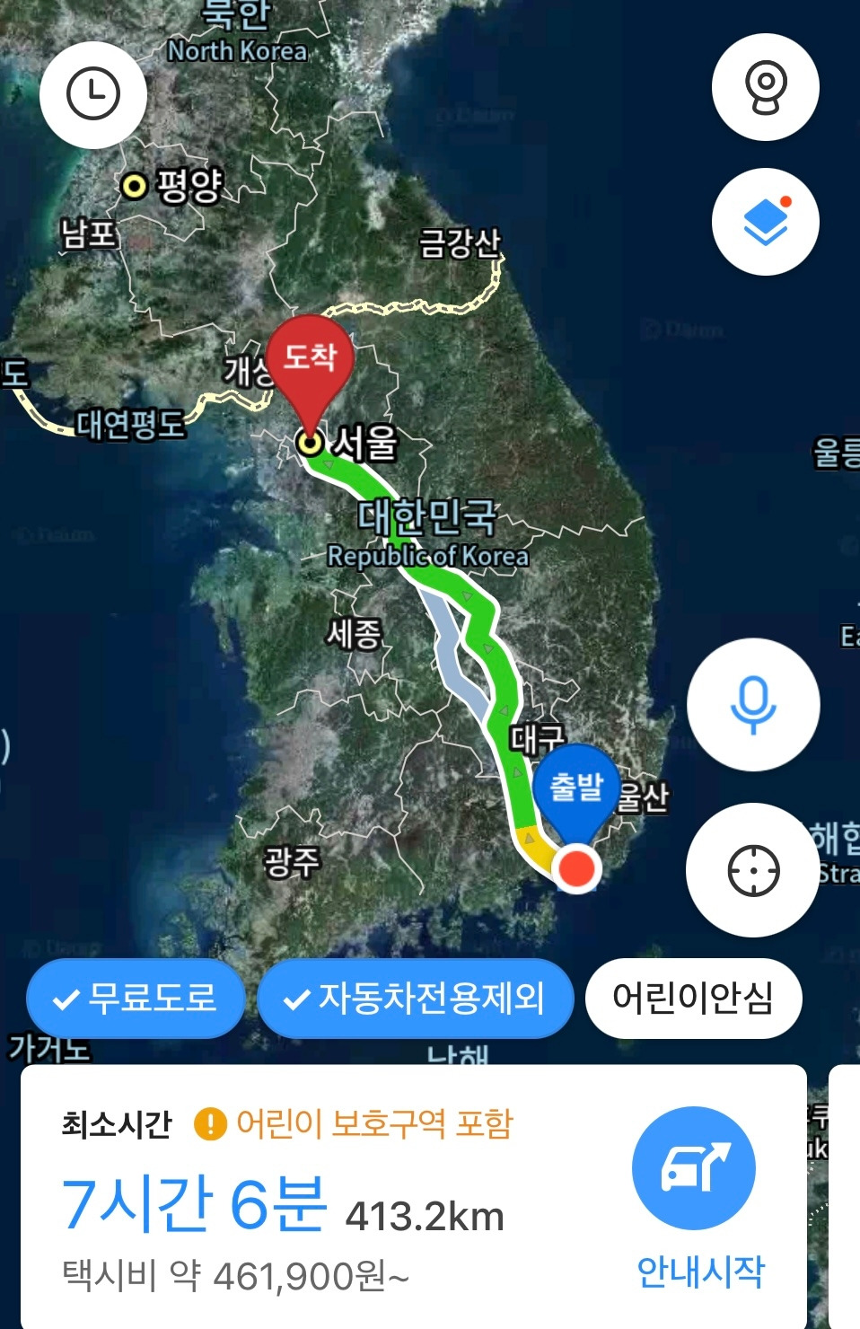 2. 자동차 전용도로 제외 했더니 서울 광화문까지 7~8시간 정도 걸린다. 하루에 7시간 이상을 오토바이 탈 수 있을지, 몸이 견딜지 짐작 안되지만, 꼭 하루 만에 갈 이유가 없으니 힘들면 쉬어 가고 반드시 서울 갈 필요도 없으니 마음 바뀌면 돌아오거나 다른 곳으로 가도 되니까. 그렇게 파슈수 타고 무작정 떠나는 2박(이 3박이 될지 4박이 될지 모르는) 여행 가자. 나에겐 기름냄새만 맡아도 달린다는 파슈수가 있으니까!