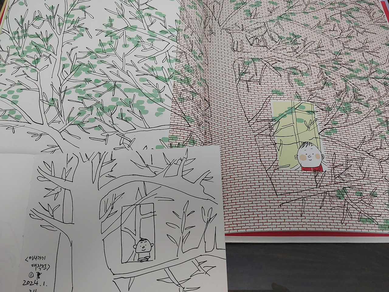 나무를 바라보는 아이의 표정이 흐뭇하다. 비록 정든 모든 것과, 나무와도 안녕해야 하지만 말이다. 이사 안가기 대작전인데 이사 가기 대작전이라 잘못 썼다. 그것도 재미있으니 그냥 두고!