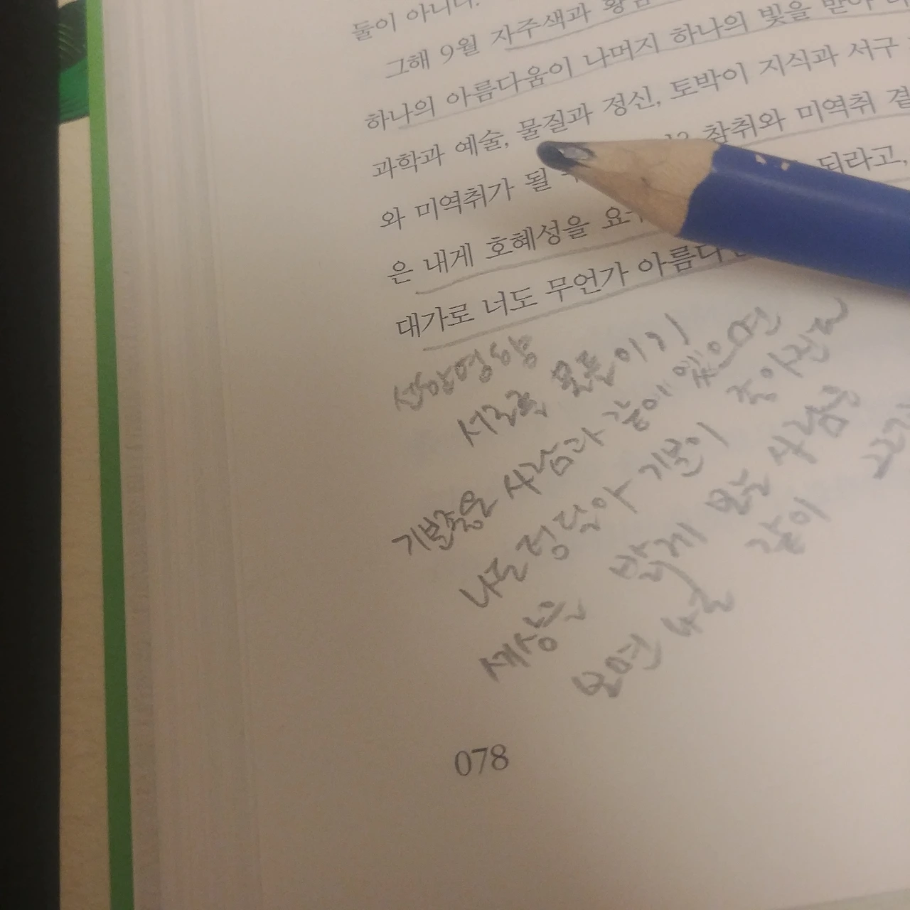 그 해 9월 자주색과 황금색의 짝은 호혜성을 살아냈다. 그 지혜는 하나의 아름다움이 나머지 하나의 빛을 받아 더욱 빛난다는 것이다. 과학과 예술, 물질과 정신, 토박이 지식과 서구 과학이 서로에게 참취와 미역취가 될 수 있을까? 참취와 미역취 곁에 있으면 그 아름다움은 내게 호혜성을 요구한다. 보색이 되라고, 자신이 베푼 아름다움의 대가로 너도 무언가 아름다운 것을 만들라고. p.78