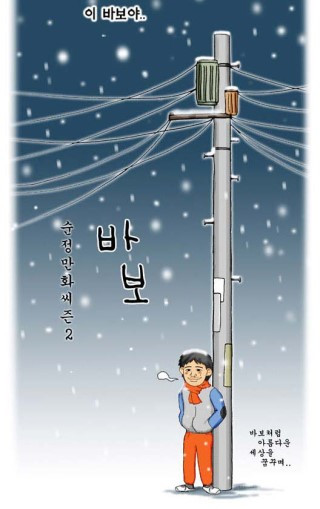 강풀의 순정만화 시즌 2의 바보는 어떠한가. 누가 바보인가. 코를 흘리며 말을 더듬는 승룡이가 바보인가. 아니면 허세를 부리며 분을 못 이기는 상수인가. 두려움에 자신의 꿈을 접어버리려는 지호일까. 허영과 사치에 빠져버린 희영일까. 그도 아니라면 이야기의 마지막에 와서야 오빠의 사랑을 깨달은 지인일까.