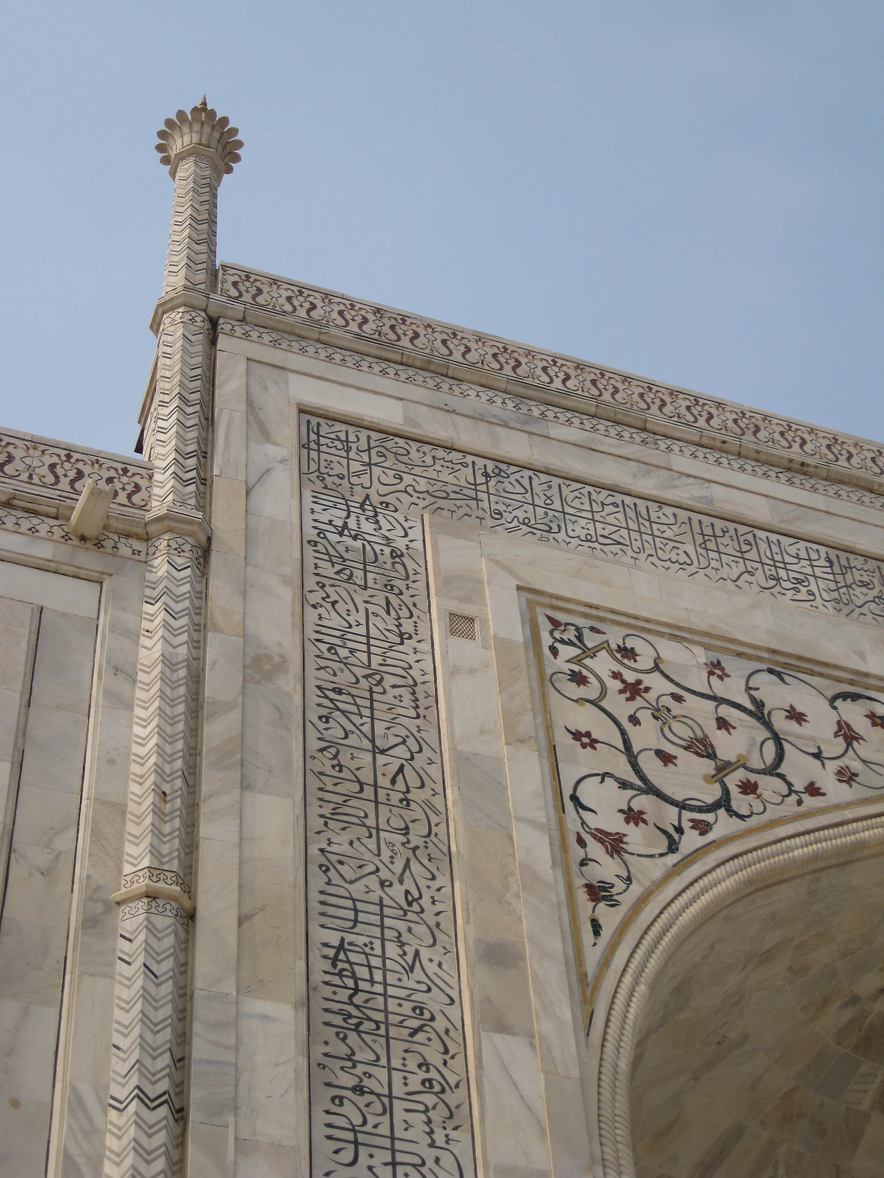 샤자한은 해마다 누군가의 희생으로 아름다움을 갖춰가는 무덤을 바라보면서, 자신의 사랑의 가치가 후대에 걸쳐 영속되리라고 믿었을까? 나는 밝게 빛나는 웅장한 대리석 조각들, 화려한 장식과 대칭구조 등을 목도하면 경탄하지 아니할 수 없다. 동시에 그것이 무덤이라는 사실이 머리에 스치면, 사랑의 온기가 온데간데 없어지고 아름다움을 빙자한 권력의 폭력에 몸서리 쳐진다. 사랑의 마음을 기리는 아름다운 무덤이라는 개념이 내 머릿속에 떠오르는 순간, 병리적일 만큼 그의 강박적이고 집착적인 왜곡된 사랑의 실천 방식이 당대의 수많은 백성의 삶을 곤궁하게 만들었을 것이 상상된다.