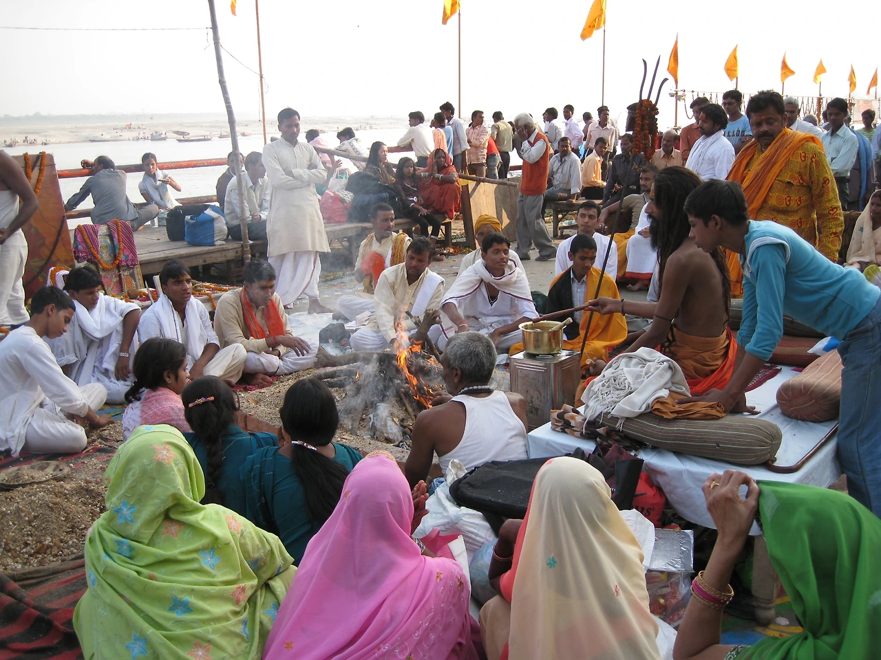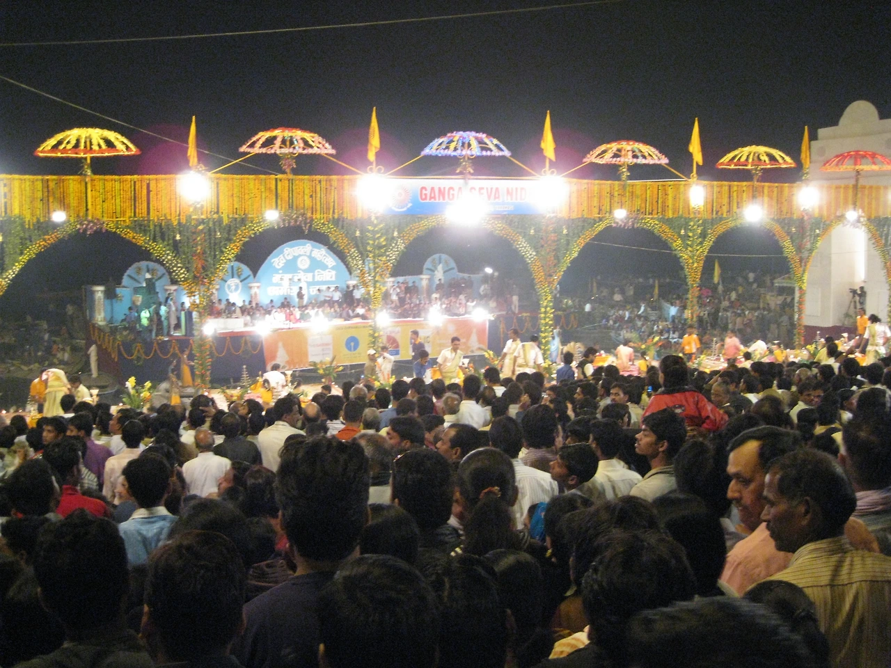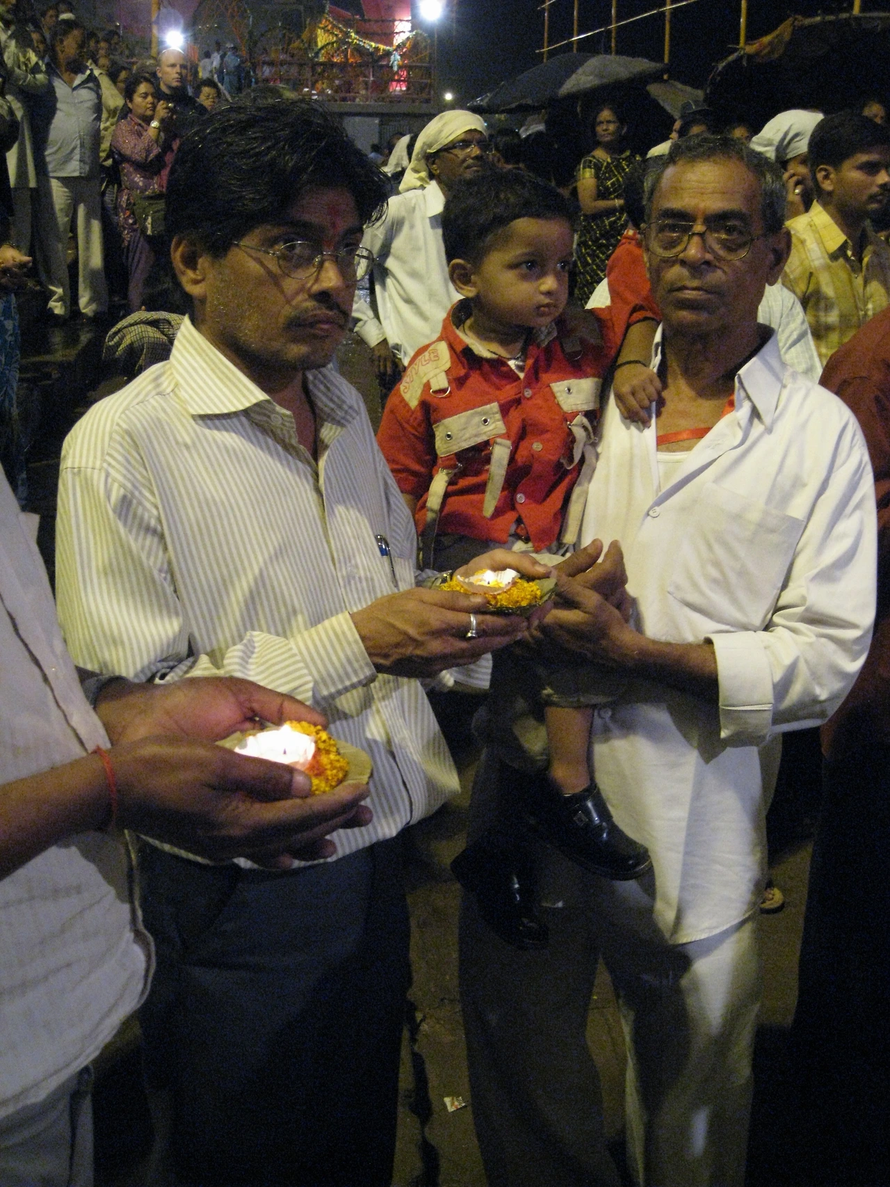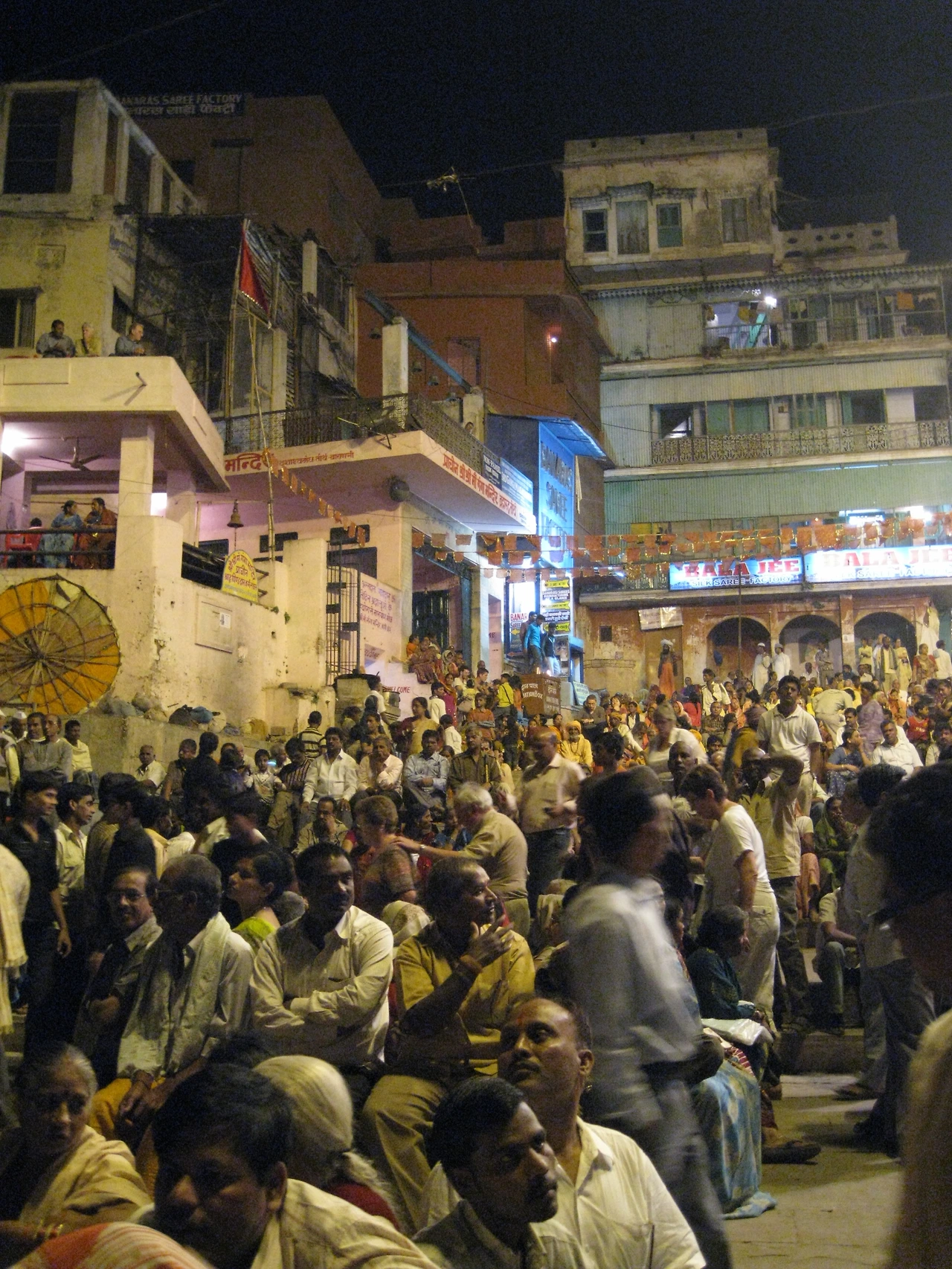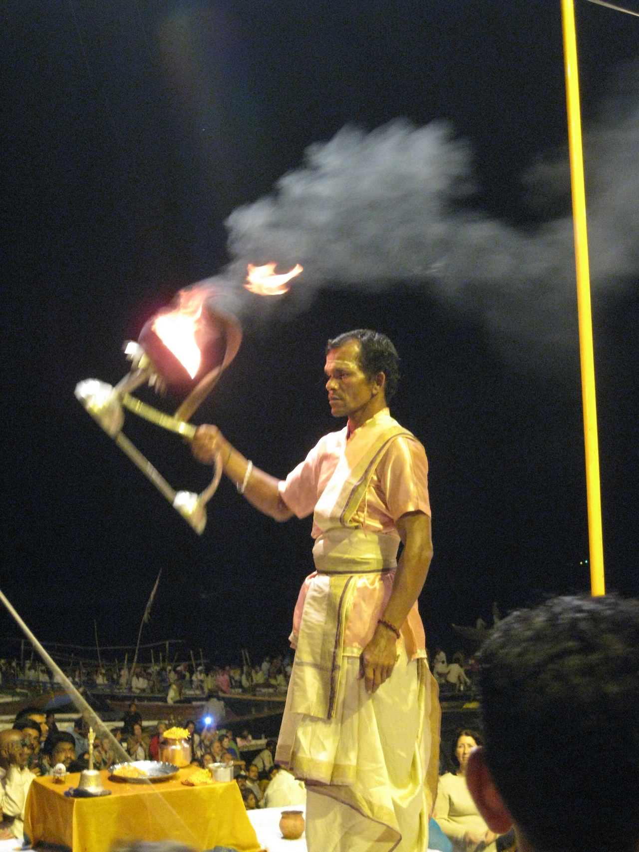 해가 지기 시작하면서, 바라나시의 하늘이 붉게 물든다. 수천 명의 사람들이 가트로 운집한다. 갠지스 강 위에는 수많은 작은 나룻배들이 떠있고, 그 안에 사람들은 작은 등불을 들고 서 있다. 이미 가트에도 수천 명의 인도인과 관광객이 모여있다. 실크 소재의 전통 복장을 두른 사제들은 현란하면서도 절제된 몸동작을 선보이며 제사를 지낸다. 그리고 고개를 숙이고 눈을 감은 채 생각에 잠긴 듯한 사람들, 사제들의 말을 따라 기도하는 사람들, 생경하고 성스러운 광경에 눈을 뗄 수 없는 관광객 등 모두가 저마다의 시선으로 제사에 참여한다. 가트 주변에서는 아이들이 불꽃놀이를 준비하고 있고, 이미 몇몇 다른 가트에서 산발적으로 쏘아 올린 폭죽들은 요란한 소리를 내며 여기저기서 터지고 쏟아진다. 화약 내와 뿌연 연기가 눈과 코를 자극한다.