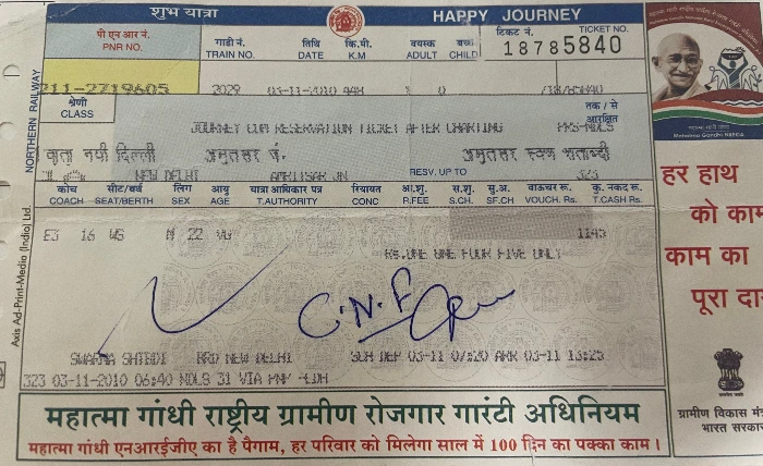 인도의 기차표는 내가 알 수 없는 힌디어와 영어로 쓰여 있어 직관적으로 알아볼 수 없다. 나는 표를 받아 들고 심각한 얼굴 표정을 지은 채 역사로 걸어간다. 열차를 기다리며 손에 쥐어진 새로운 기차표를 뚫어져라 본다. 내가 인식할 수 있는 문자는 1A, 1145, NEW DELHI, AMRITSAR, 출발시각, 그리고 도착시각.