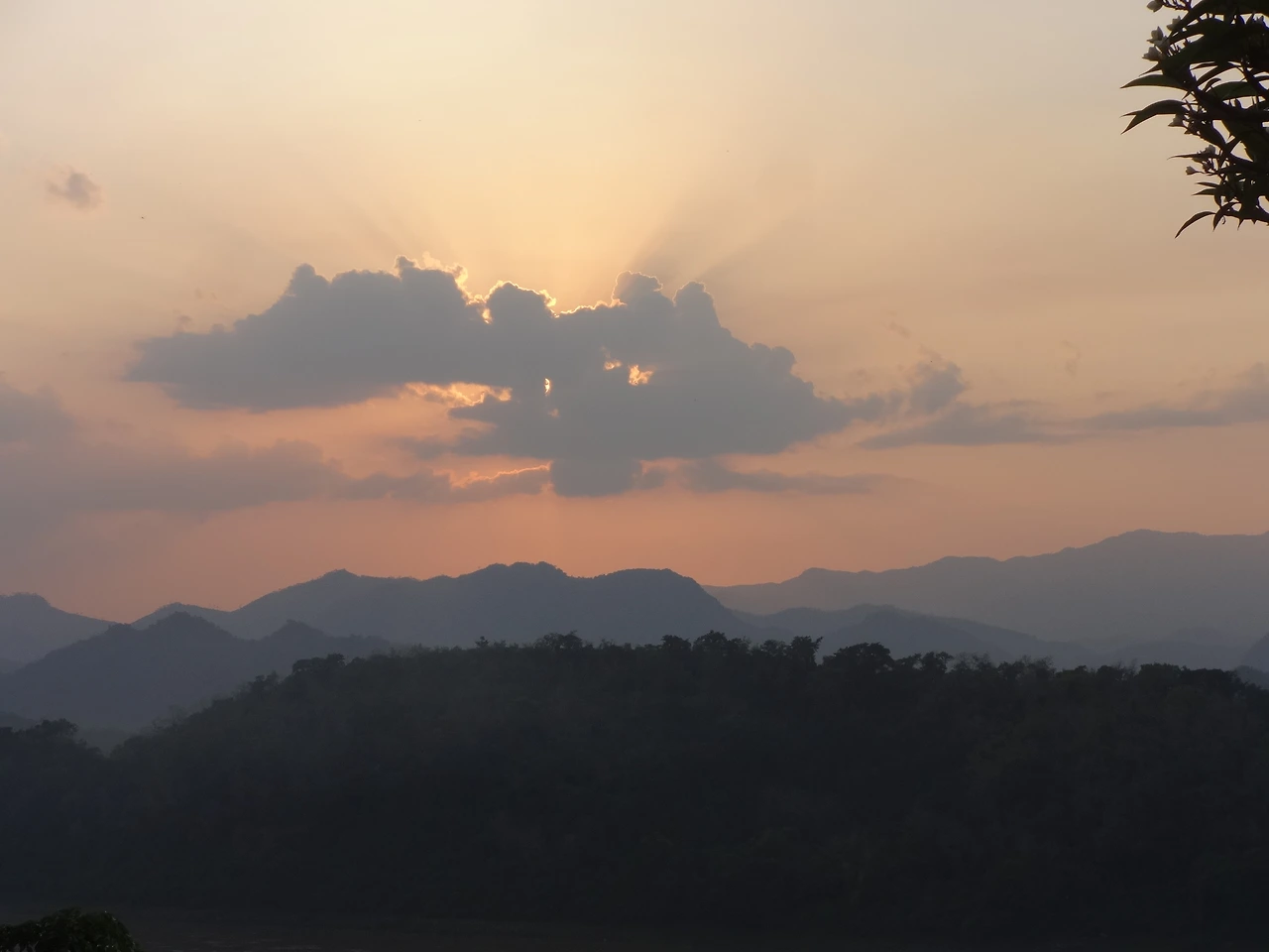 라오스의 유명한 일몰 포인트 푸씨산
