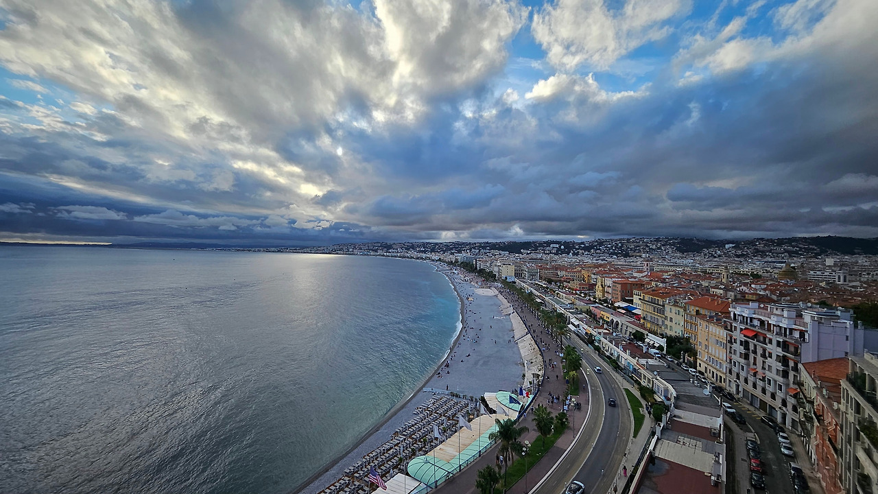 먹고 해변 따라가다가 #ILoveNICE 싸인을 발견했다. 사진 찍는 사람들이 많아 내 사진도 부탁했다. 사진을 부탁하면서 요령이 생겼다면 광각 모드로 설정하고 넘겨주는 거였다. 이쪽 사람들은 사람이 사진에 가득 차도록 찍는 경우가 많아 풍경을 못 건지게 되는데 광각으로 찍으면 내가 크롭이라도 할 수 있으니 그게 나았다. 사진 찍고 전망대 발견하고 올라가서 사진을 찍는데 더 높이 올라가는 계단이 있어 다시 올라갔다. 이 높은 곳에 공원도 있고 꼬마기차도 다닌다.