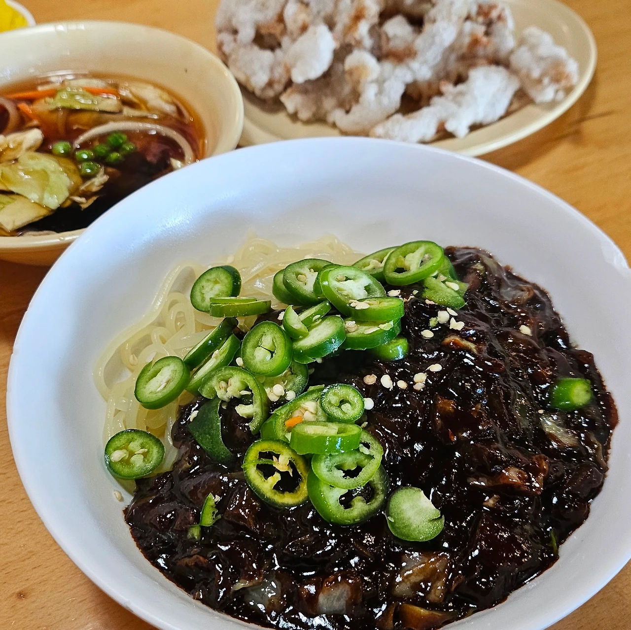 자존심 상하지만 출발 전부터 기대가 된다. 최근에는 흑백요리사의 영향으로 심사위원의 프랜차이즈라는 소식을 듣고 미국인 손님들이 늘었다고 한다. 매운 게 먹고 싶어 고추짜장을 주문했는데 빨갛거나 고춧가루가 추가된 짜장일 줄 알았는데 그냥 채 썬 고추가 올라가 있다. 안 매워 보여 패기 있게 먹었지만 할라피뇨라인의 고추인가 보다 엄청 매워서 나중에는 고추는 다 걷어내고 먹어야 했다.