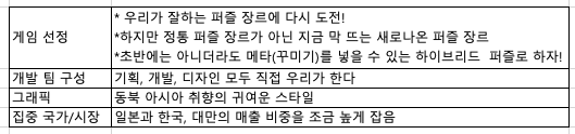 집중 국가/시장: 위에 언급한 것처럼 귀여운, 하이브리드 퍼즐을 만들면 좀 더 한국과 일본에서의 매출이 높을 것이라고 생각했다. 마케팅도 좀 더 잘할 수 있을 것 같았다.