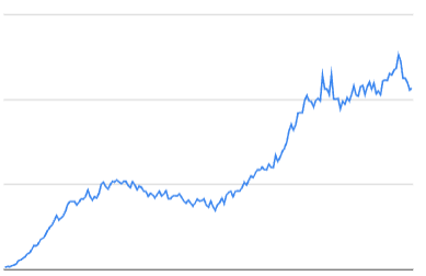 블록냥은 어느 구간에서 매출이 정체되다가 다시 매출이 오르고 있다.
