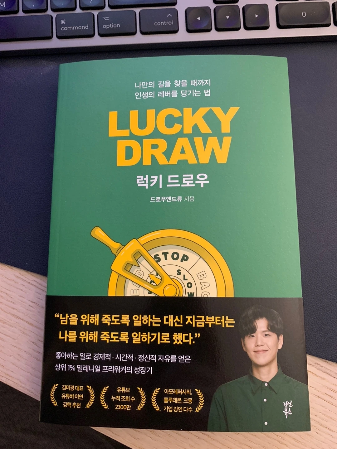 드로우앤드류는 자기 계발 관련 분야의 유튜버이고 디자인과 마케팅 관련 해서 프리랜서 형태로도 일하고 있다. 얼마 전 이 사람의 책 '러키 드로우' 보았다.