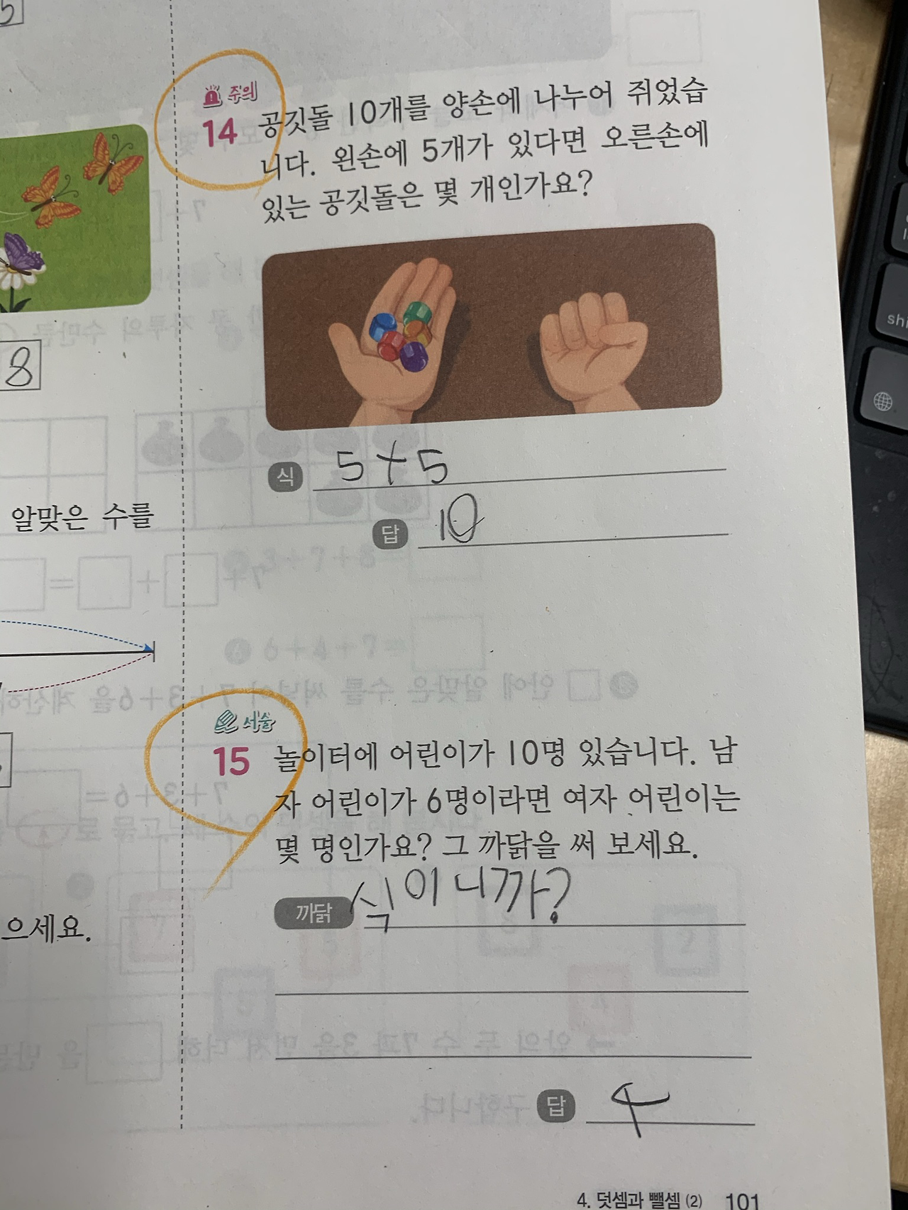 그다음 “까닭”을 말하라는 주관식에 “식이니까”라고 쿨하게 “까닭”을 써낸다. 짜식.