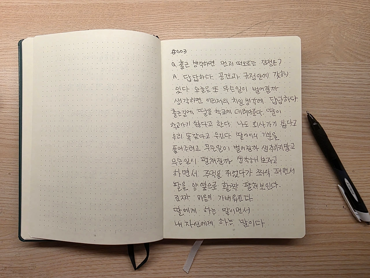 A: 출근 생각하면 답답하다. 공간과 규정 안에 갖혀 있다. 오늘은 또 무슨일이 벌어질까 생각하면 이리저리 치일 생각에 답답하다.