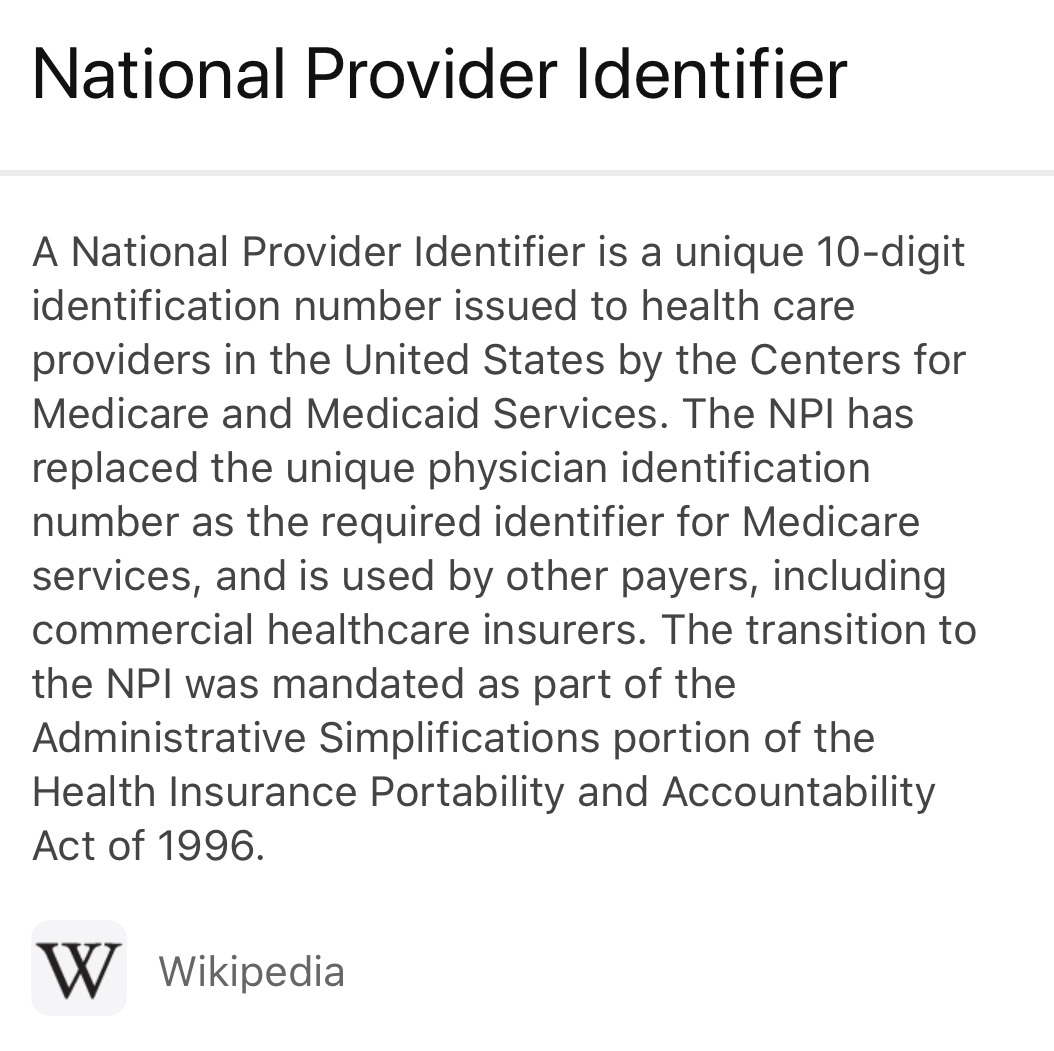 출처: Wikipedia #NPI납세자 번호(Tax ID)는 IRS에서 무료 교부받을 수 있으며 개인 사회보장 번호를 사용하지 않기 위해서는 필수로 교부받아야 합니다.