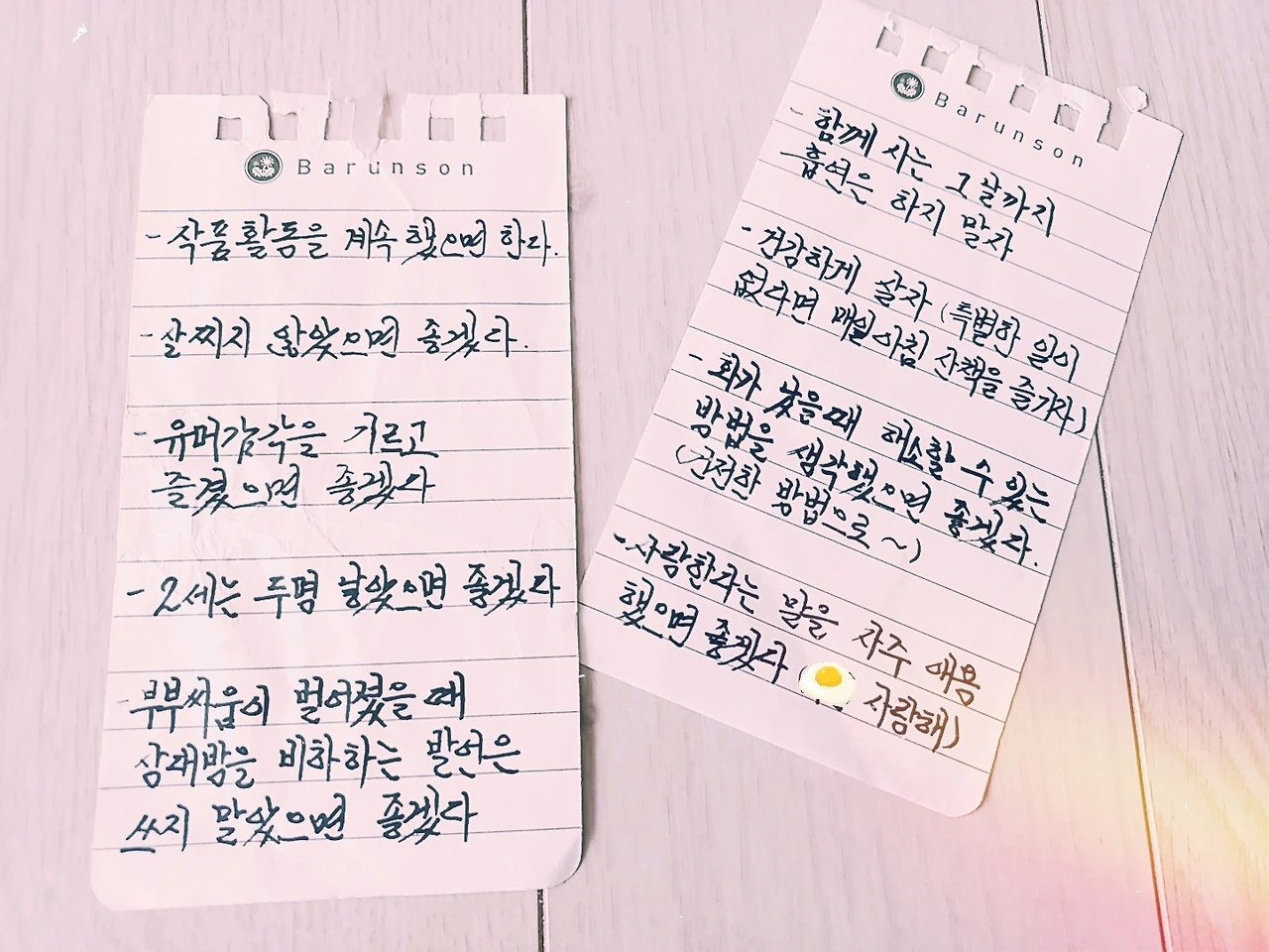 신혼여행에서 작은 수첩에 쓴 남편의 손편지