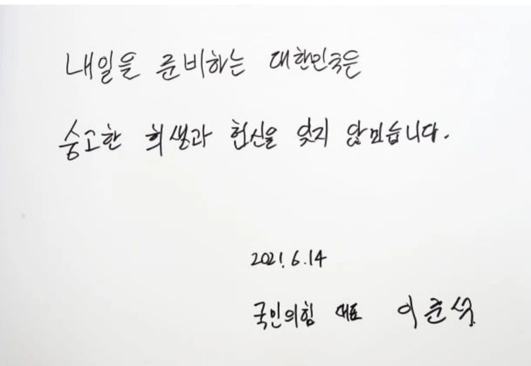나는 평소에 손글씨 잘 쓰는 사람에게 섹시함과 신뢰와 성실함과 지성을 느끼는 까다로운 꼰대 같은 취향이 있다. 그런데 이번 이준석의 글씨체는 키보드가 익숙했던 딱 우리 초등 6학년 아들 글씨 같았다.