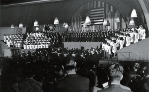 1945년 12월 16일 미국의 대학음악소사이어티에서 헨델의 메시아 중 ‘할렐루야’를 공연할 때 청중들이 기립해 있는 모습