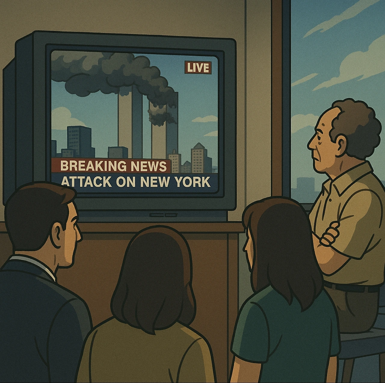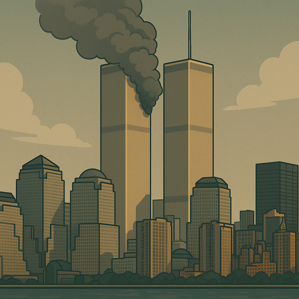 두 대의 민간 항공기가 뉴욕의 상징, 세계무역센터 쌍둥이 빌딩을 정면으로 들이받았고,
