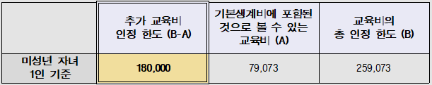 자녀 1명당 최대 18만 원까지만 추가교육비로 인정해 주기로 됐습니다.