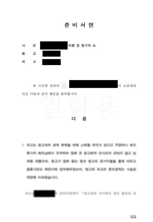 저희 법무법인은 의뢰인이 원활하게 이혼 소송에서 승소할 수 있도록 다음과 같은 변호인 의견서를 제출했습니다.